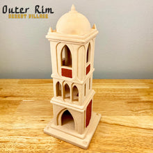 Alert and vigilant, the Outer Rim Desert Watchtower stands as the sentinel of your desert domain. This imposing structure boasts a resilient, domed roof, offering views of the vast surrounding landscape. Strategically placed windows and convenient steps leading to the peak allow your figures to maintain a watchful eye and rain down defensive fire in your next 28mm tabletop battles.