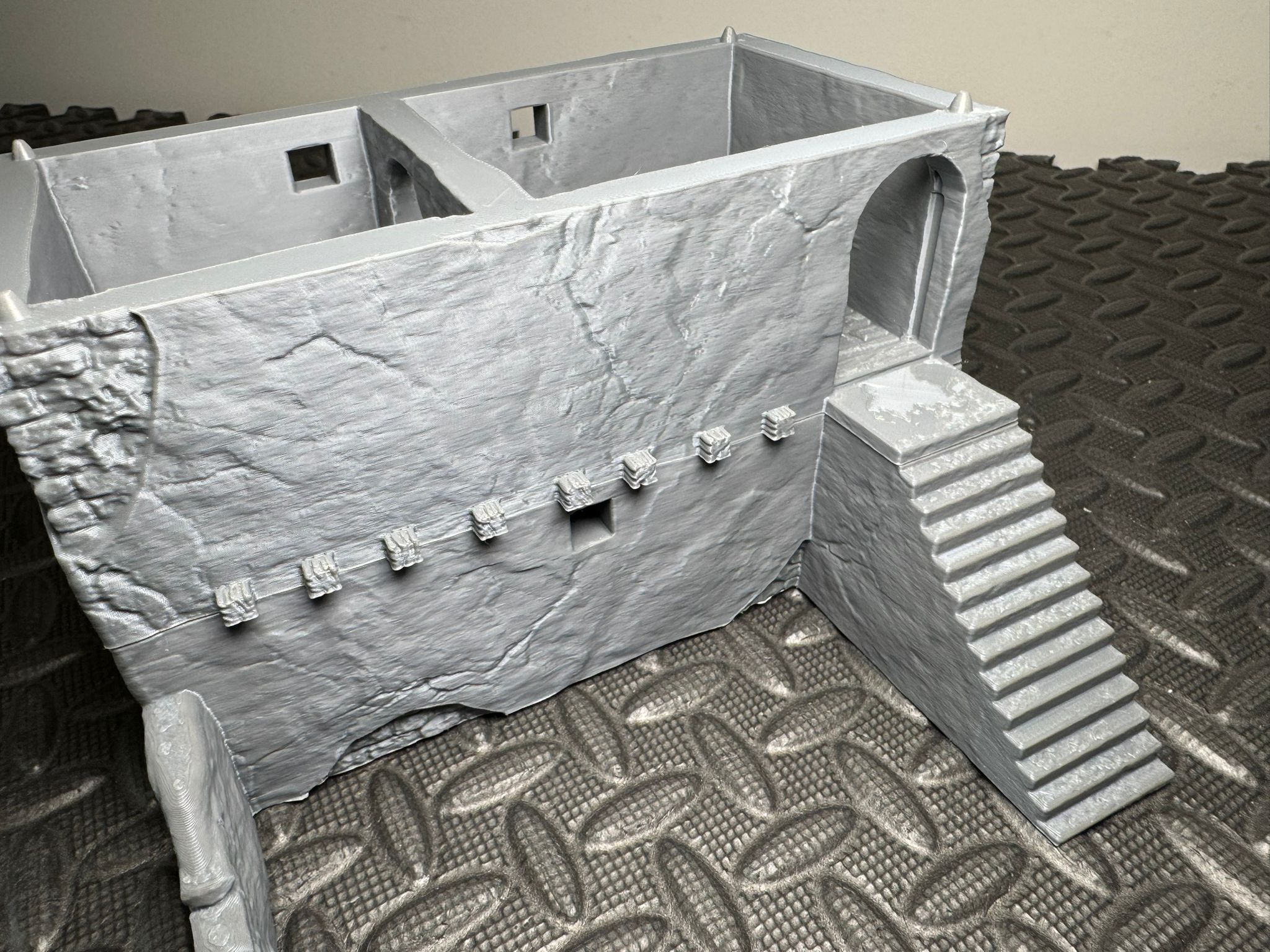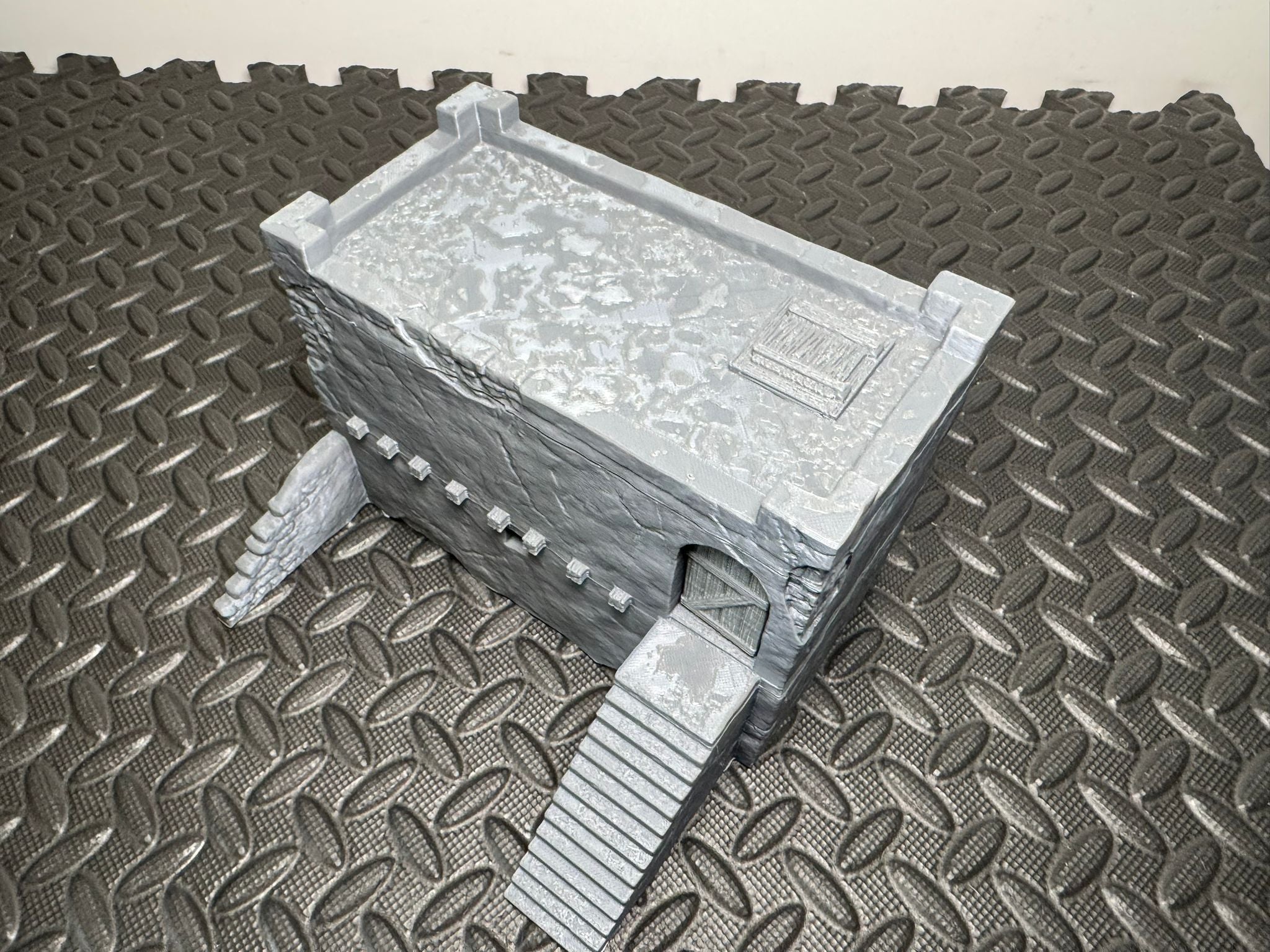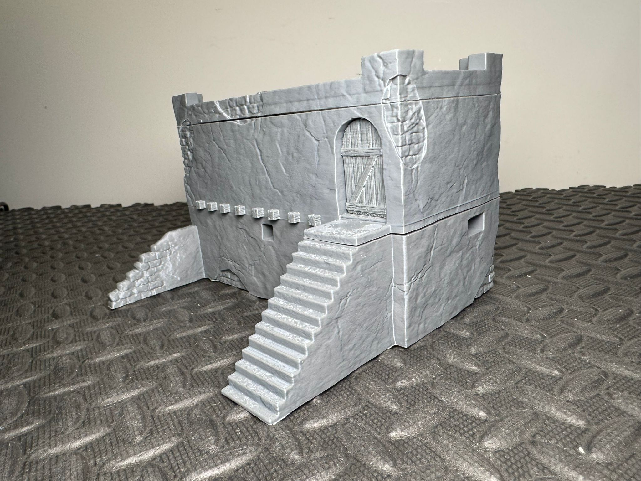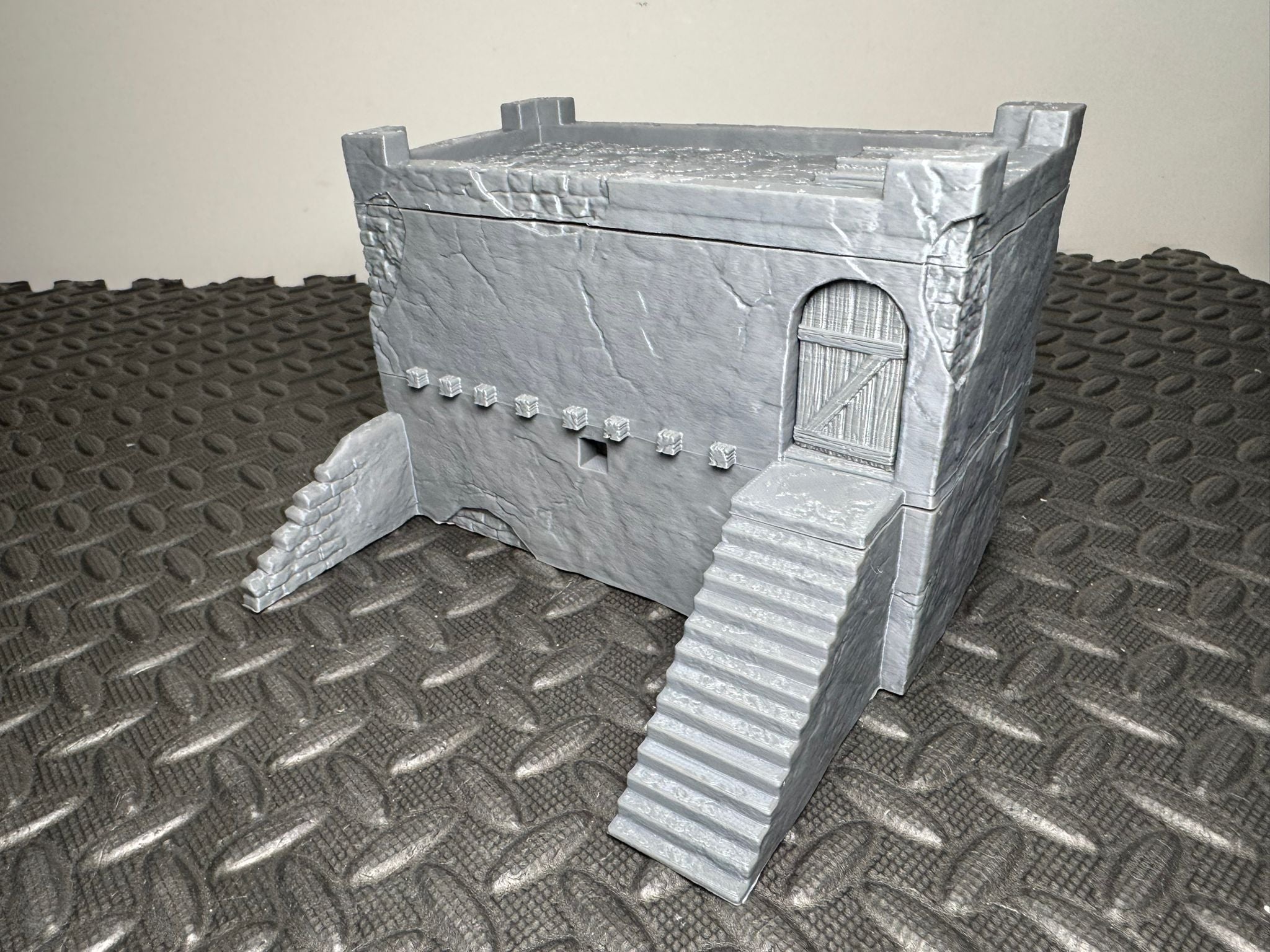 This desert-style stone building with an upper level, steps and playable interiors is designed to suit Middle Eastern and arid battlefield settings, making it a great fit for modern, historical and fantasy tabletop games. Scaled for 28mm the doors are 42mm and 40mm tall making this suitable for 32mm gaming as well