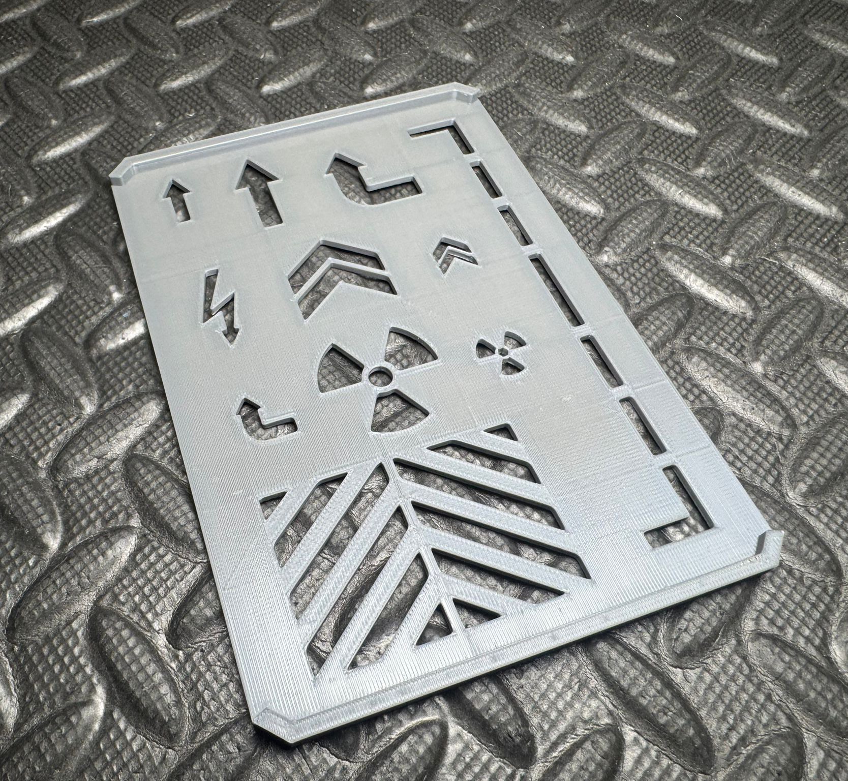 3D Printed Sci-Fi Stencil Palette with Industrial Shapes for Airbrushing & Terrain 10x14cm
