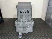 A 3D-printed Gothic Cathedral radiating dark grandeur—massive archways, towering columns, and intricate stonework evoke a solemn, ancient presence. Designed for 28mm and 32mm games, it anchors any cyberpunk tabletop with moody, imposing elegance. Sacred meets synthetic—perfect for epic duels, infiltration missions, or narrative-rich moments in dystopian skirmish campaigns.