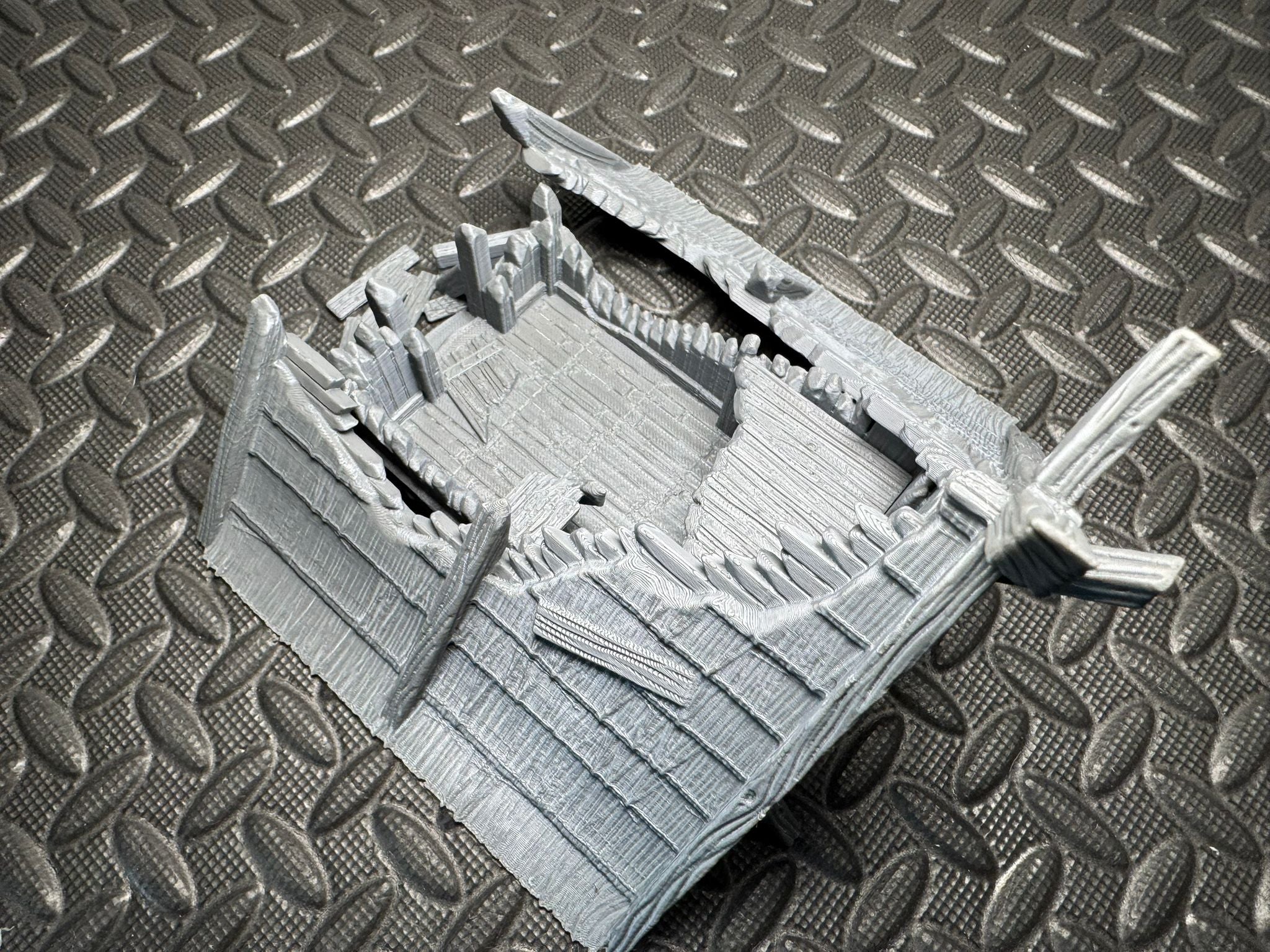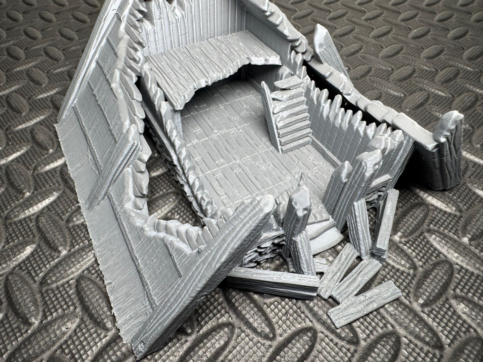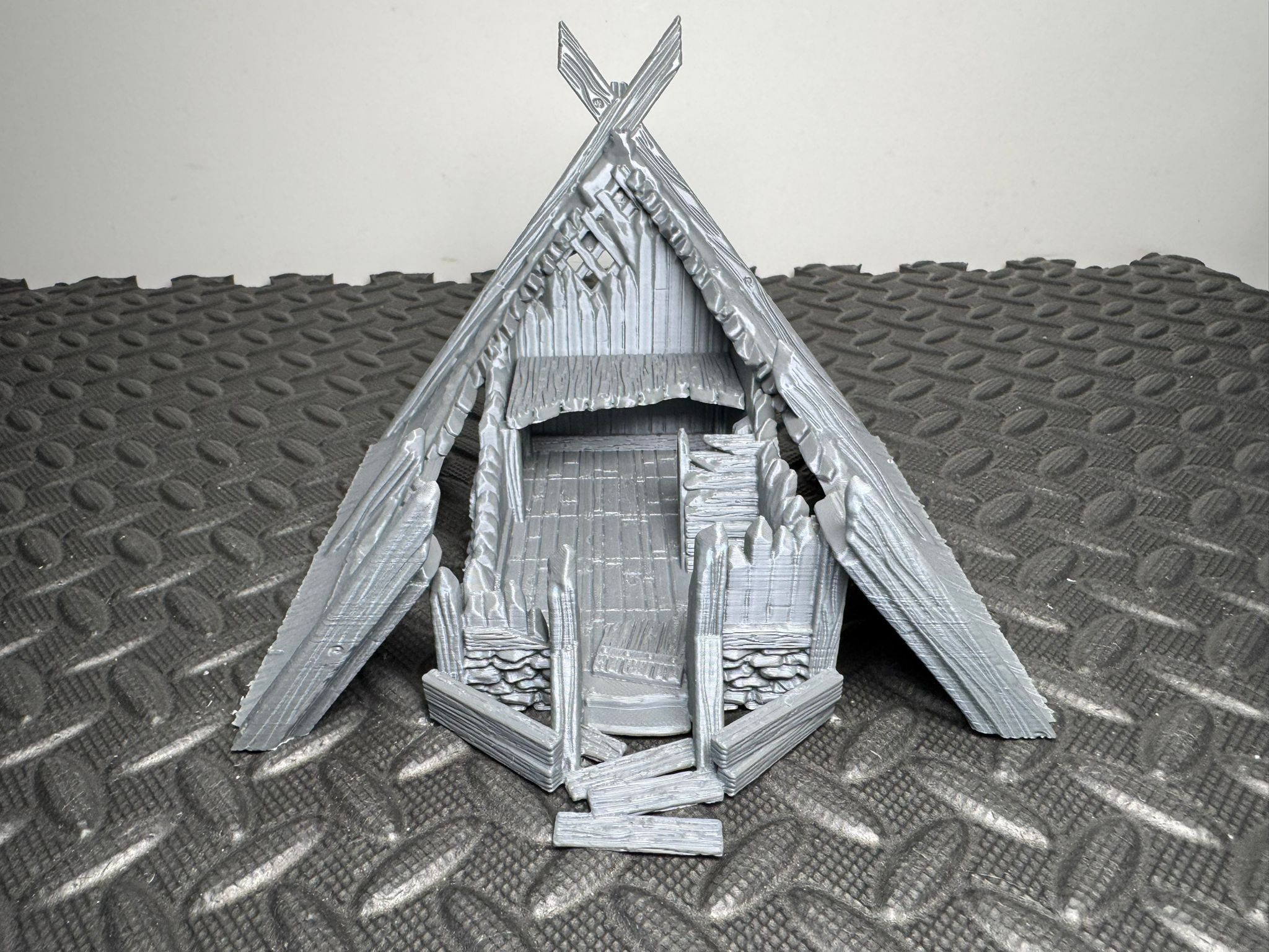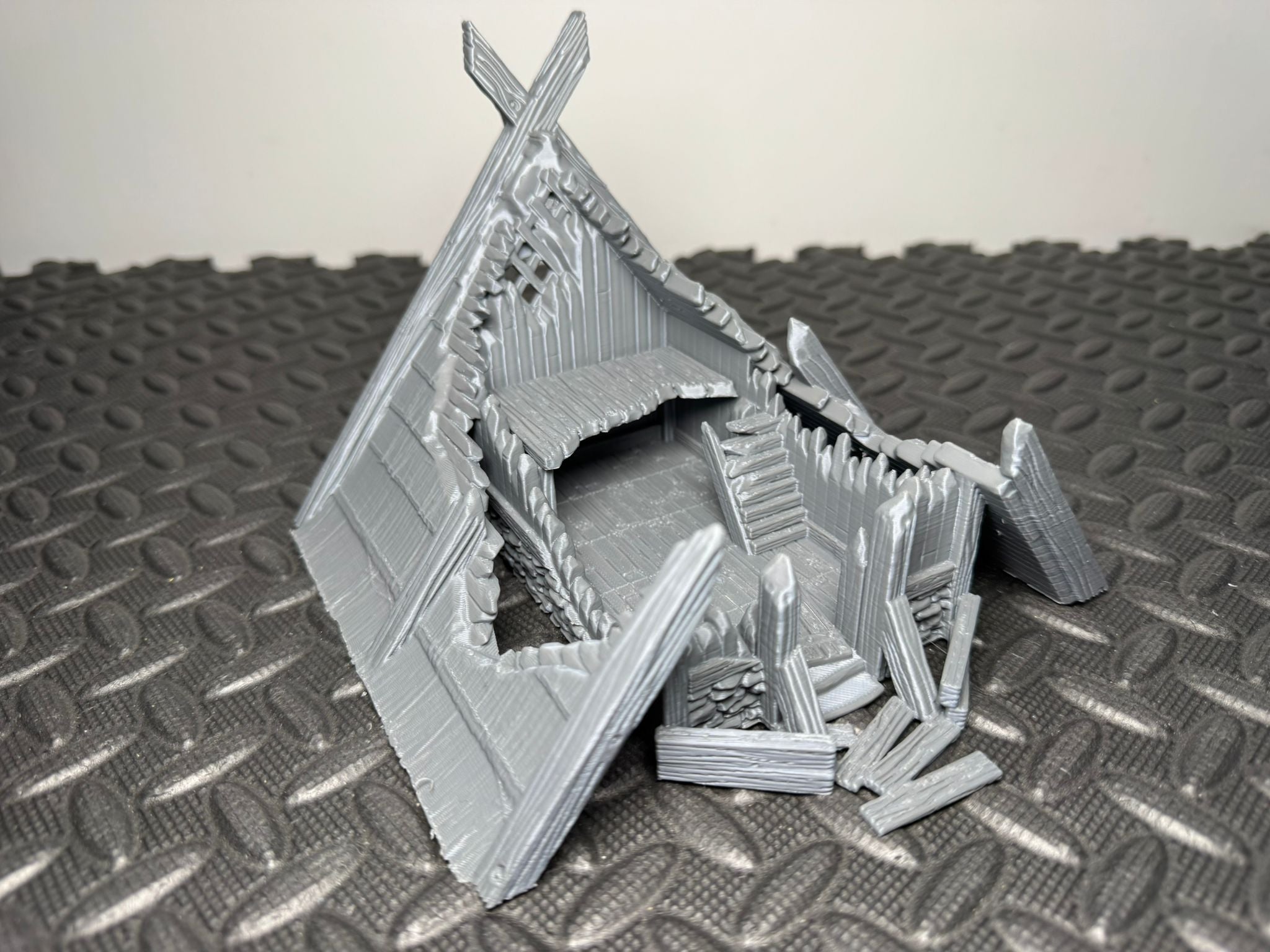 The first in a brand new series of Viking houses and buildings, in various states of destruction. This version includes a small platform to be placed inside to create an upper level