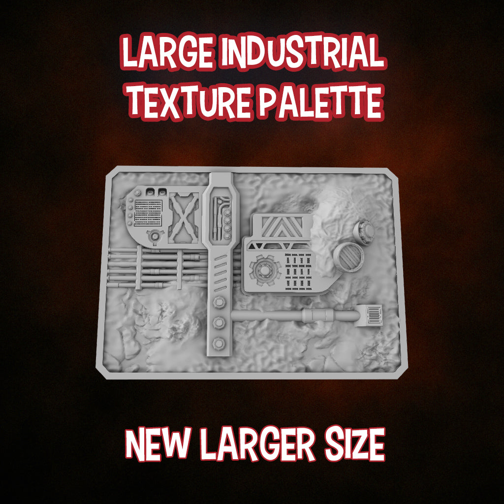 This enlarged industrial texture palette offers more working space for testing metallics, weathering, rust, grime, and layered industrial finishes on miniatures and terrain. Our popular smaller version is also available