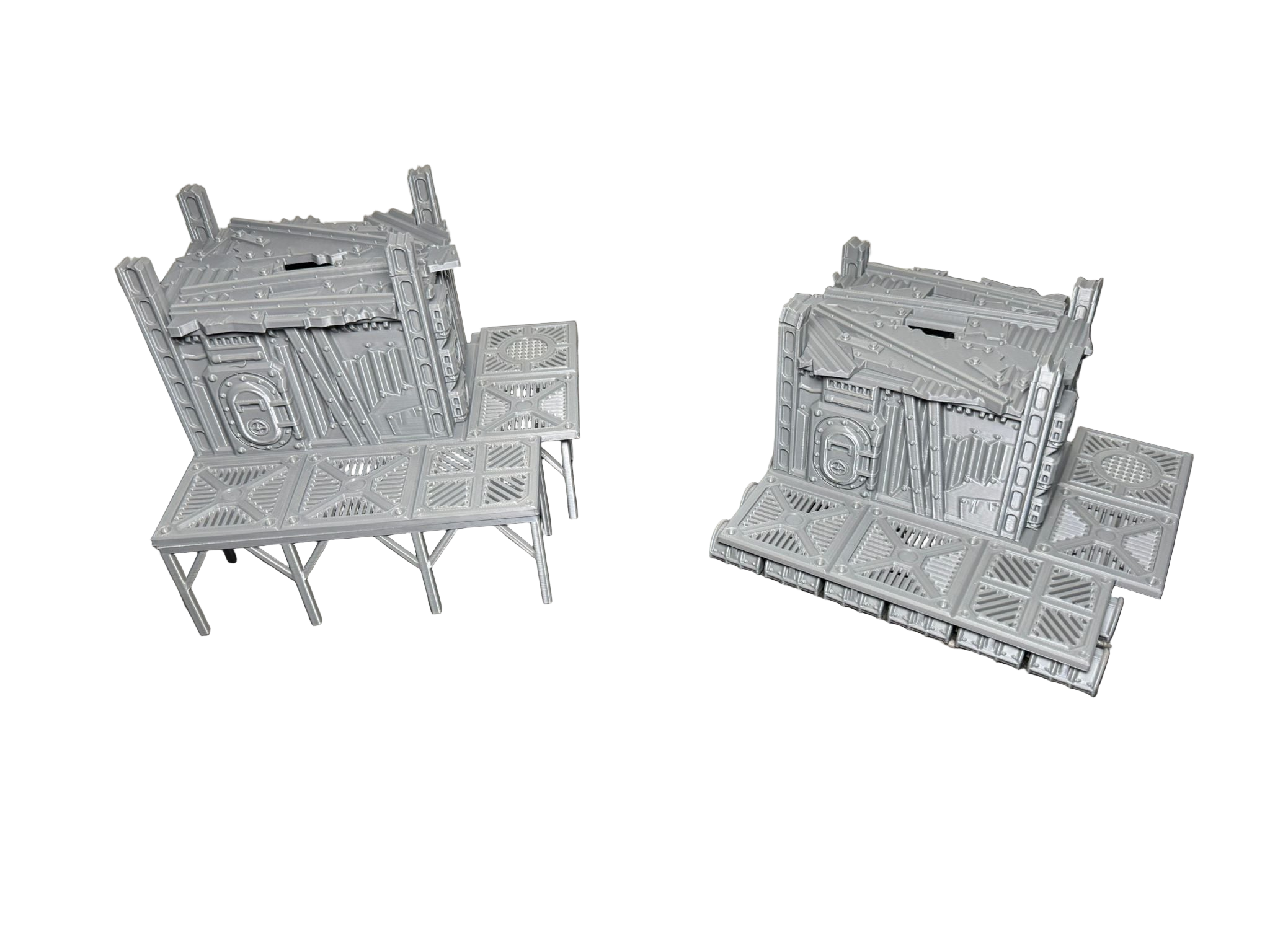 These 3D printed MEDIUM Wasteland Shanties are perfect for 28mm tabletop gaming. Choose between a floating boardwalk made from oil drums, a raised stilted version, or choose both for added variety on your wasteland table. Each kit includes everything needed to build your chosen setup and requires simple assembly.