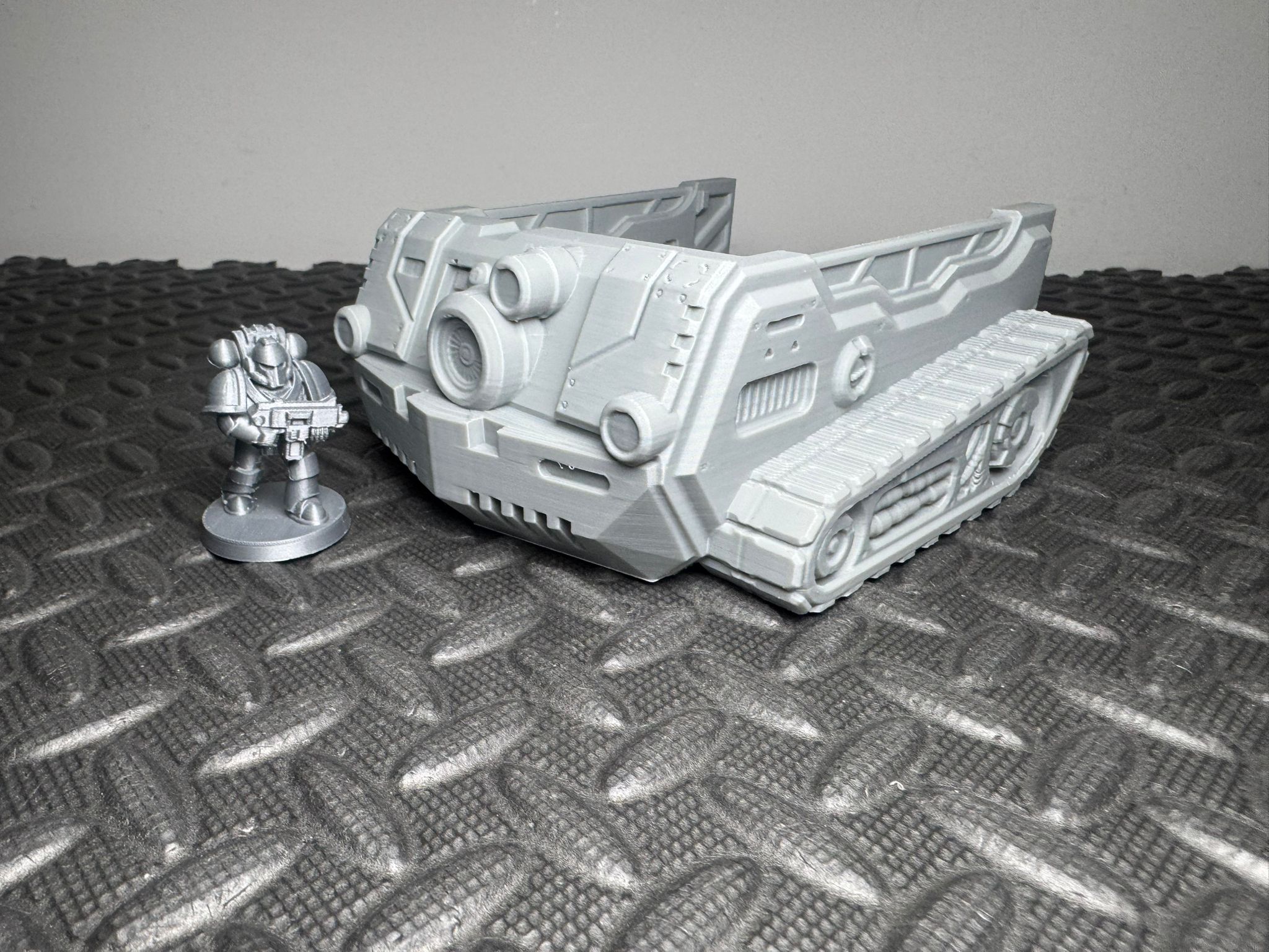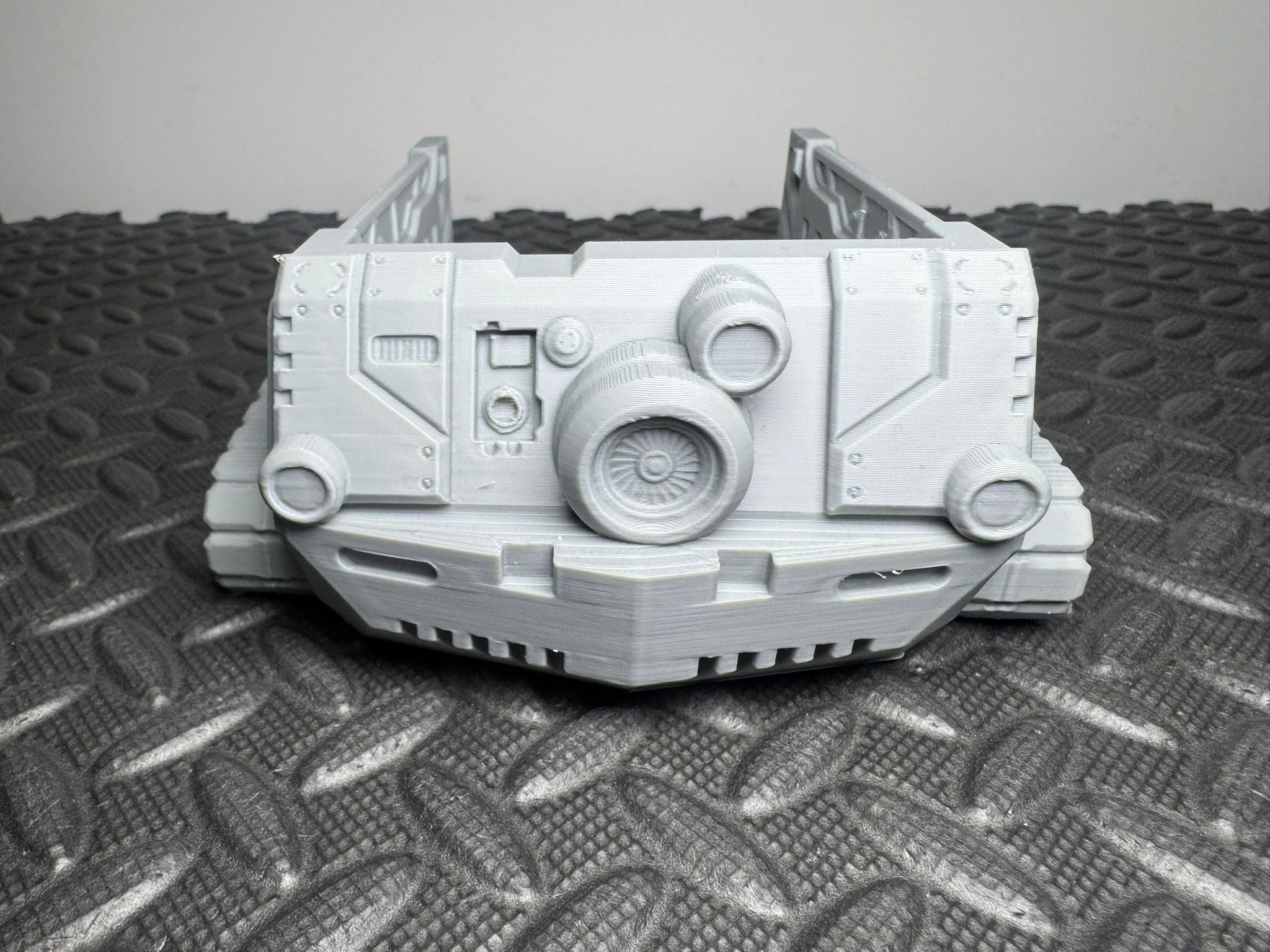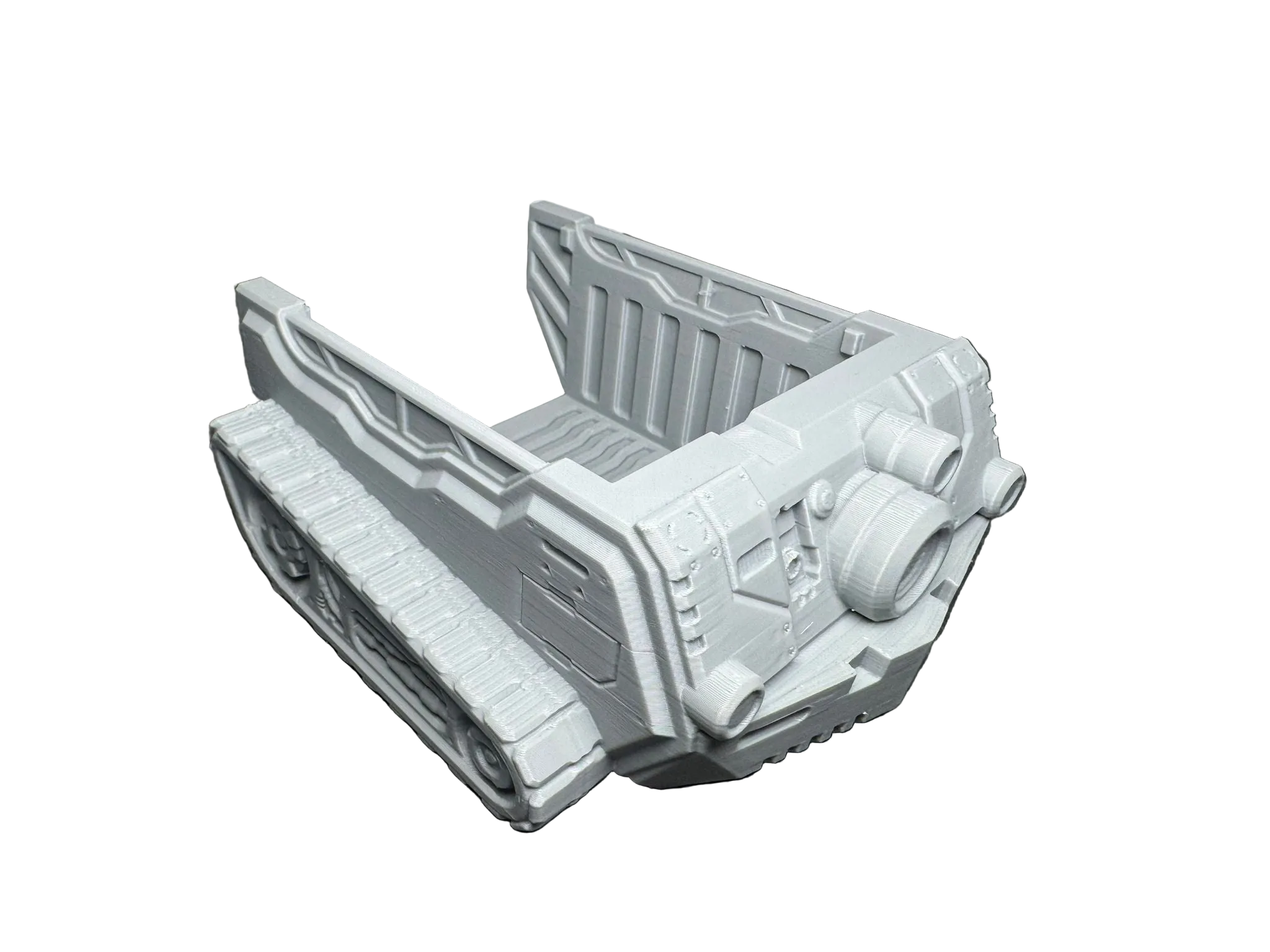 The single piece Heavy Hauler is a rugged sci-fi transport vehicle designed for heavy lifting and hauling operations, and works brilliantly when combined with other scatter terrain or platforms to create varied battlefield setups.