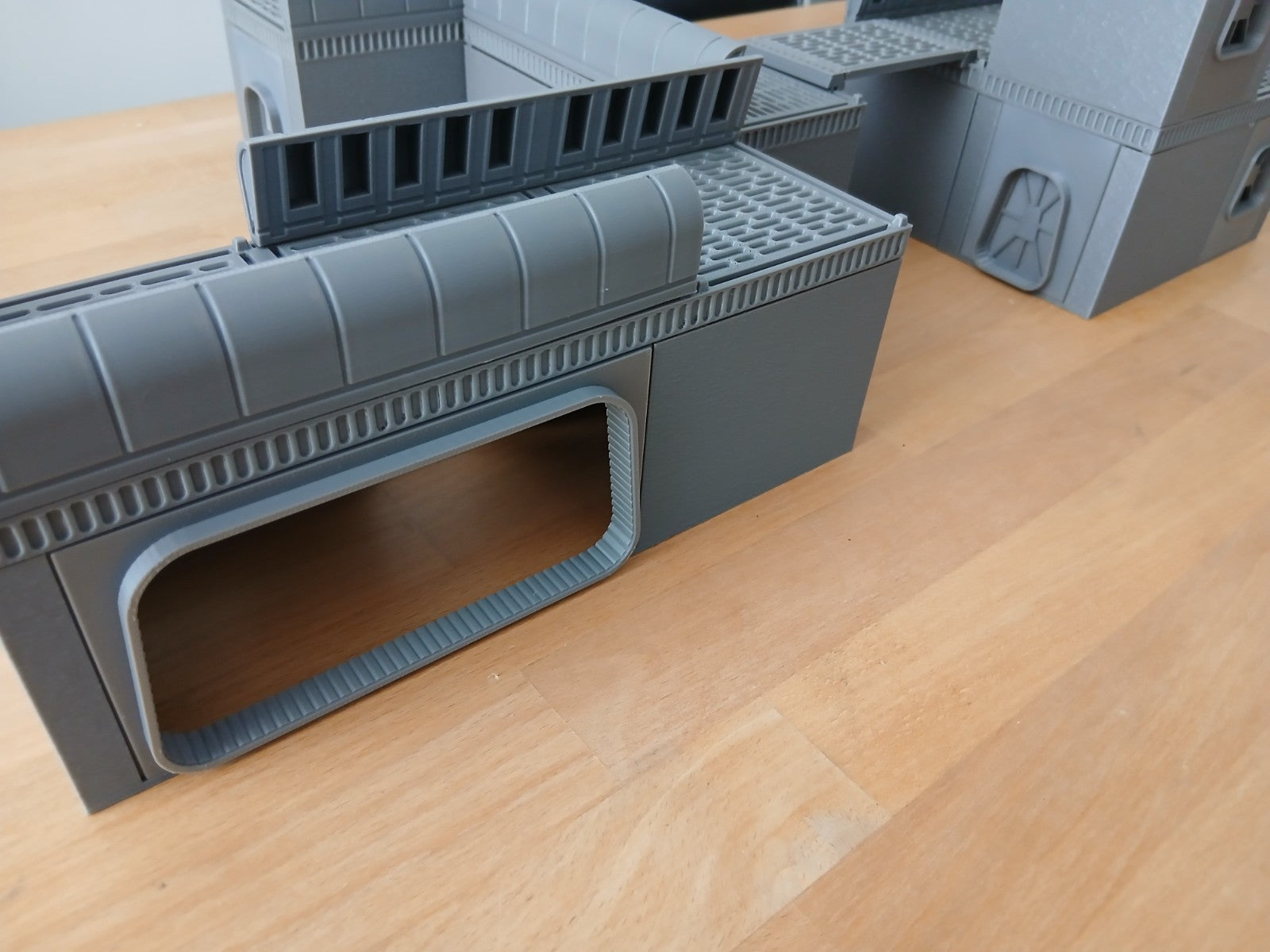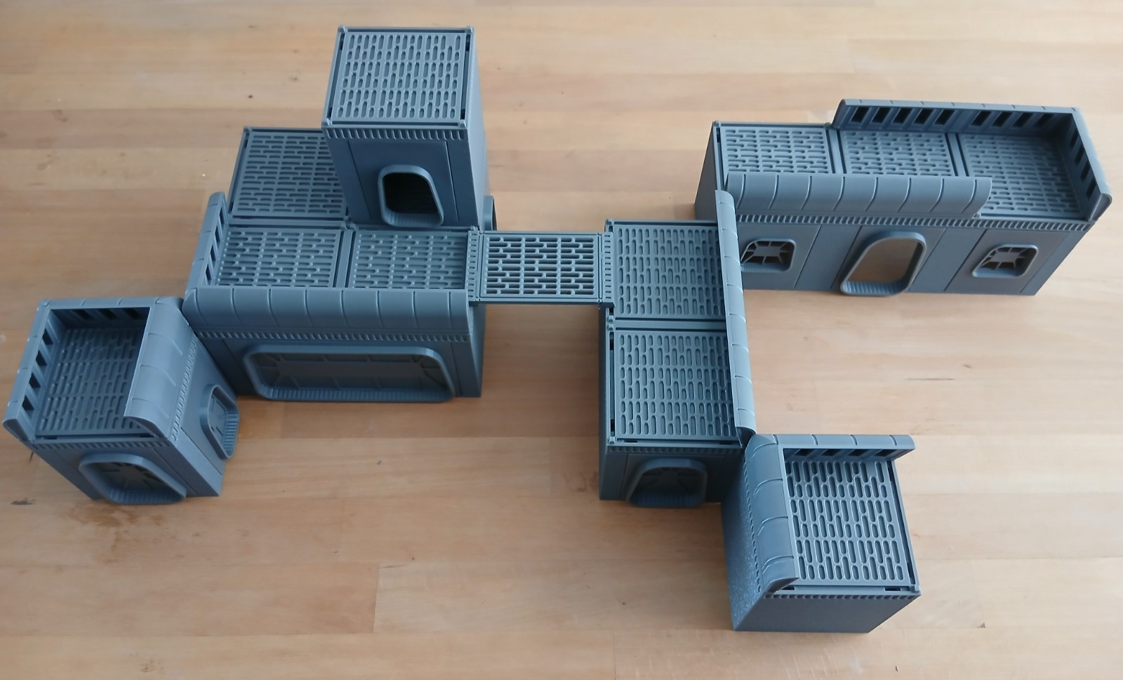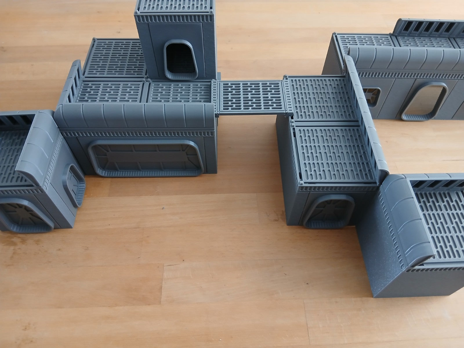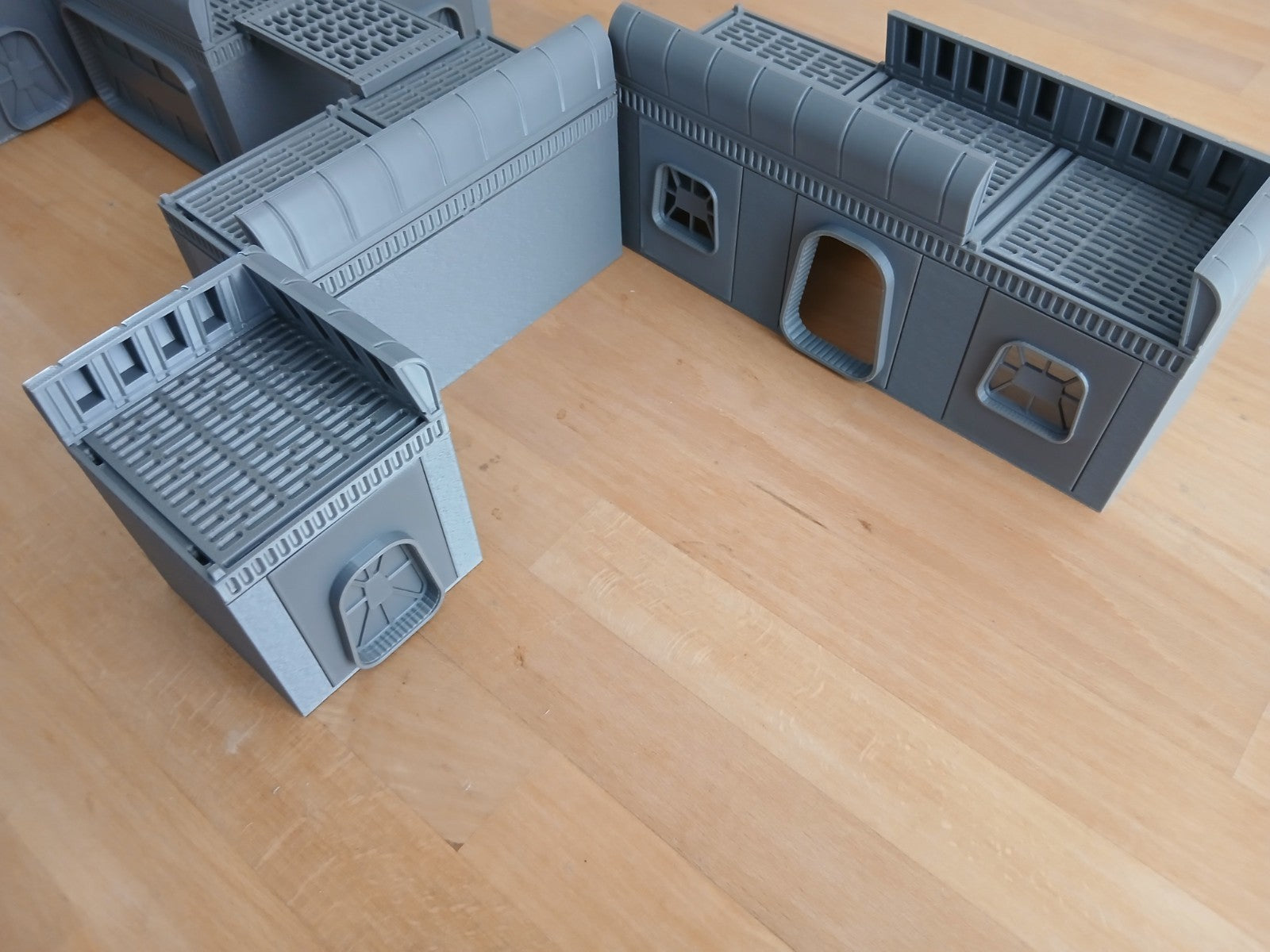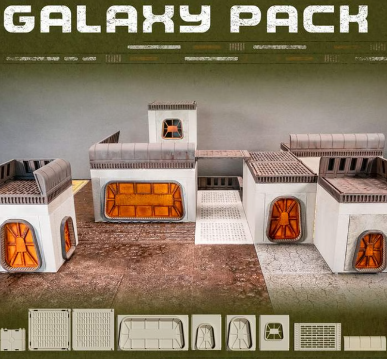 It is a Galaxy sci-fi finished layout, with mesh style roofs and space styled shutters and windows, roof parapets and toppers. Built for 28–40mm games, these stackable structures bring gritty military flair to your tabletop