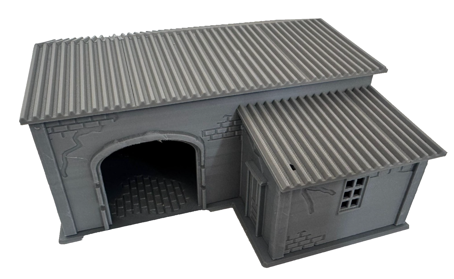 You are looking at a 28mm L Shaped Industrial Workshop style building, perfect for wargaming setups