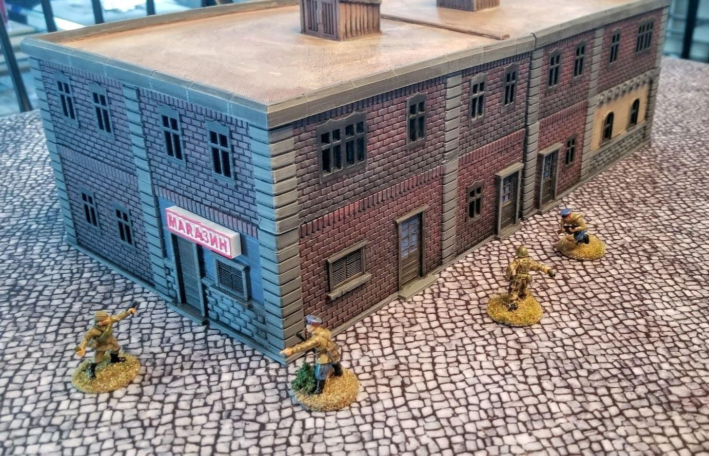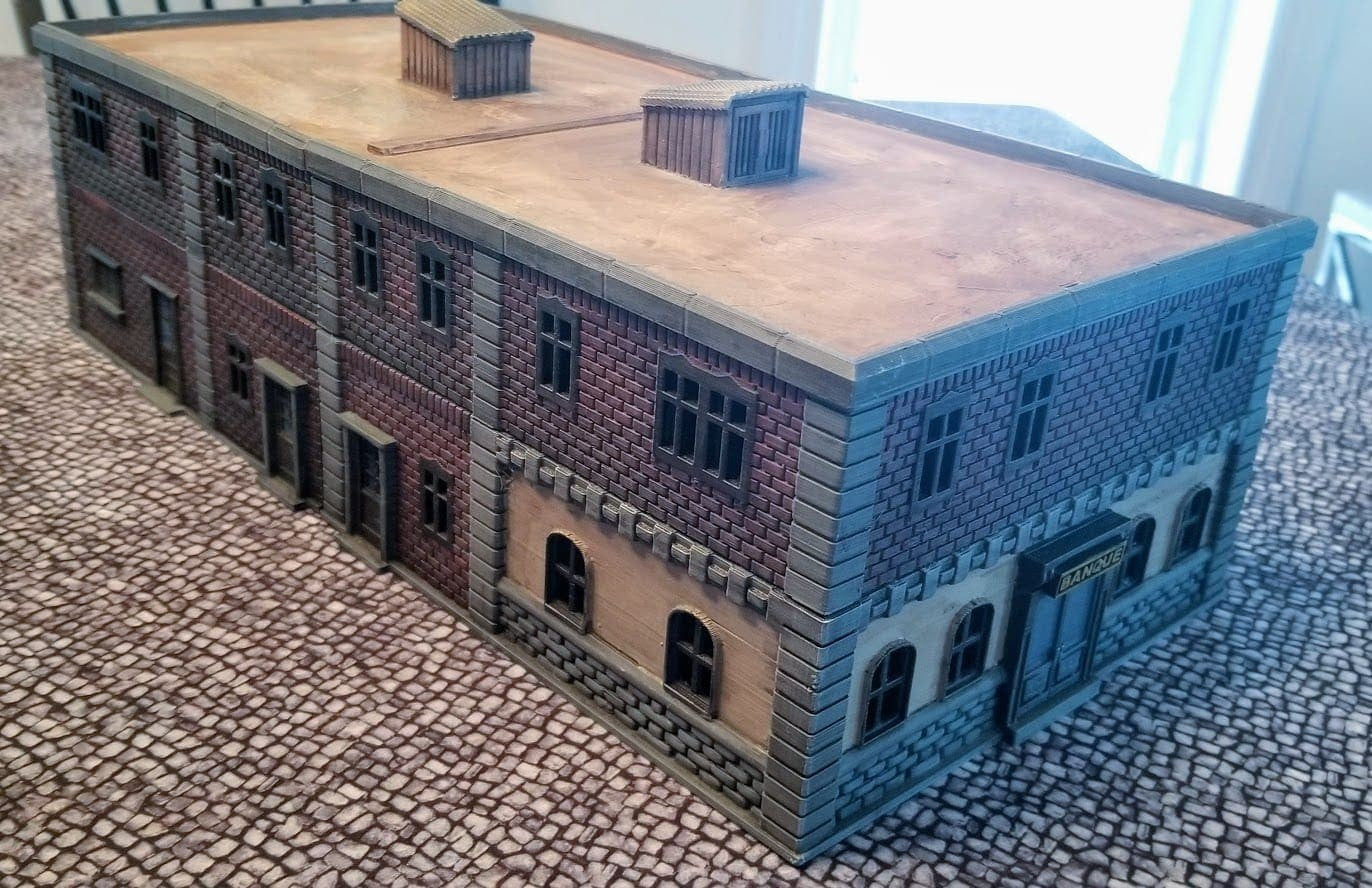 You are looking at a 28mm Sectional City Block style building with removable roofs, perfect for wargaming setups