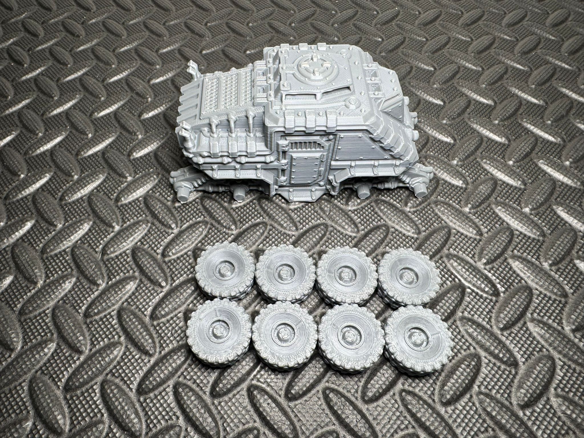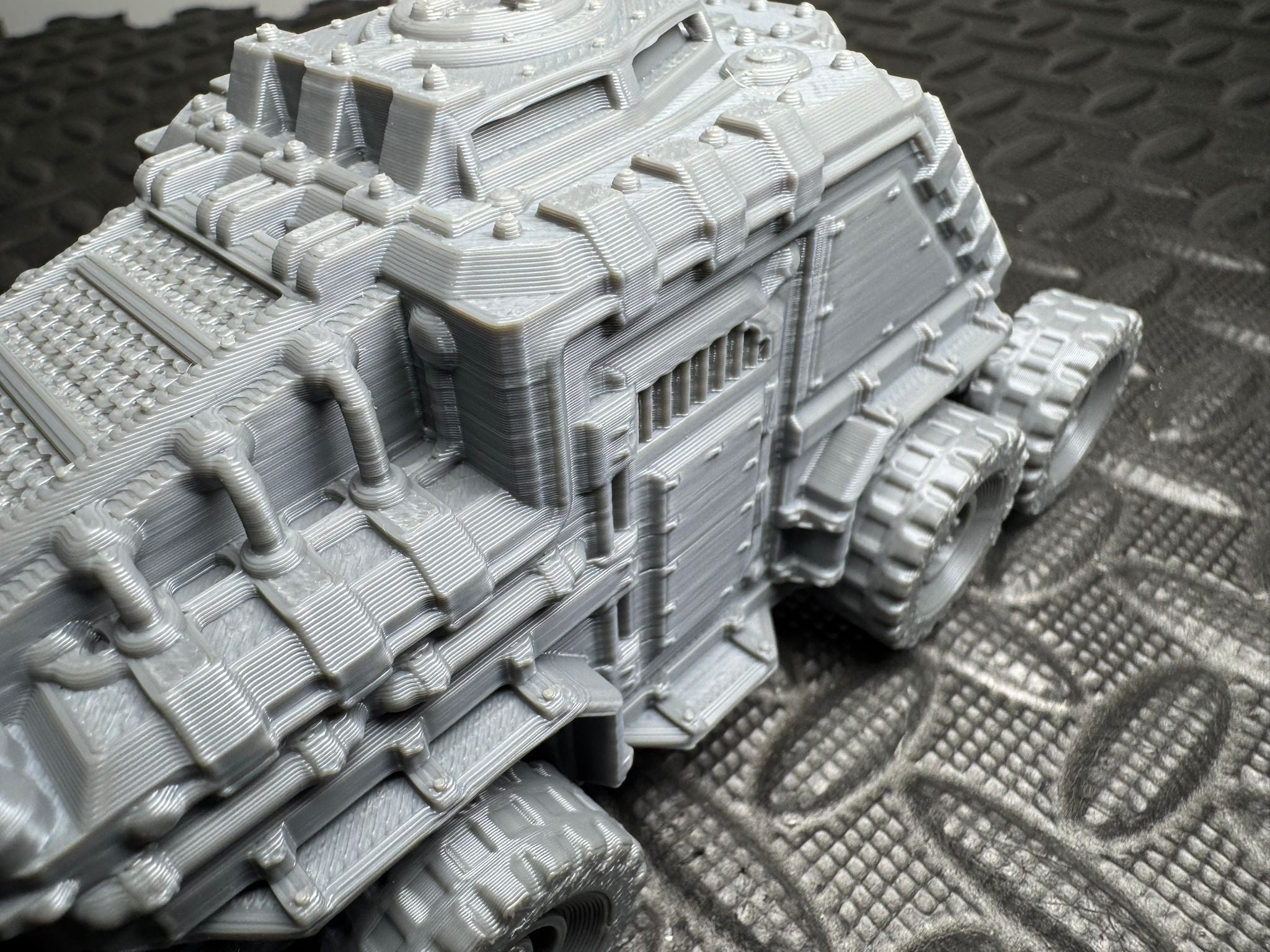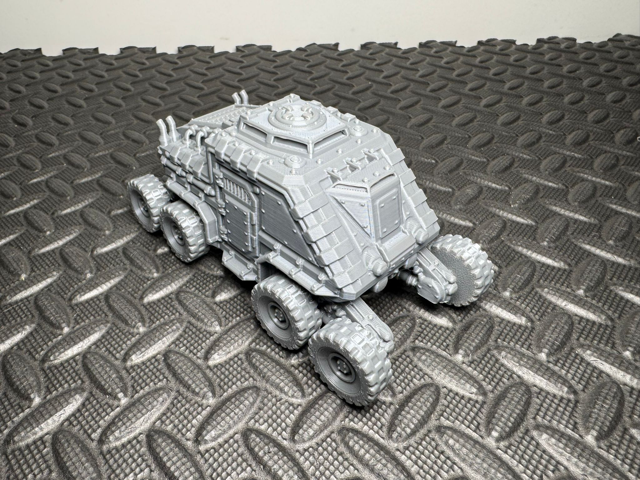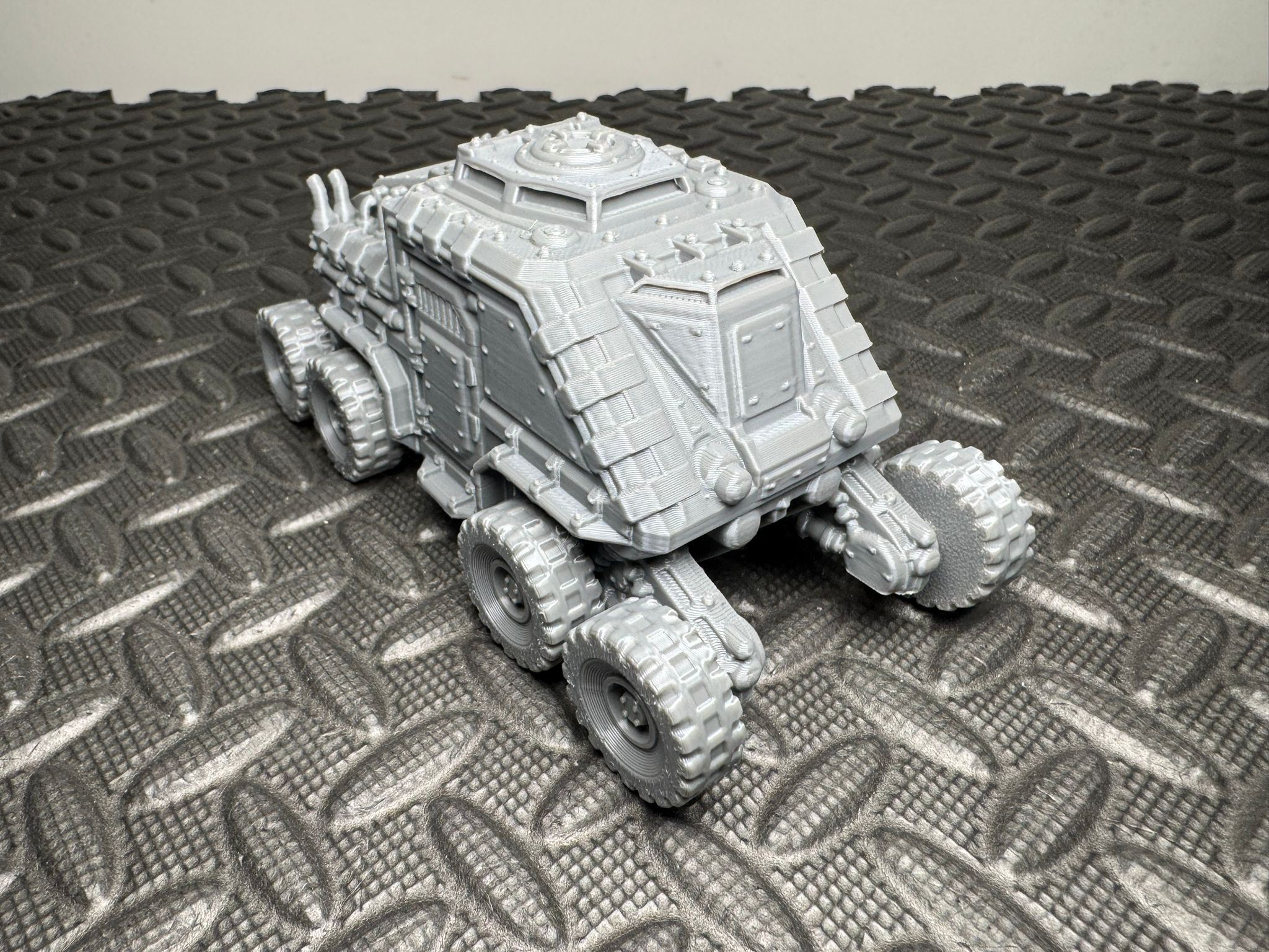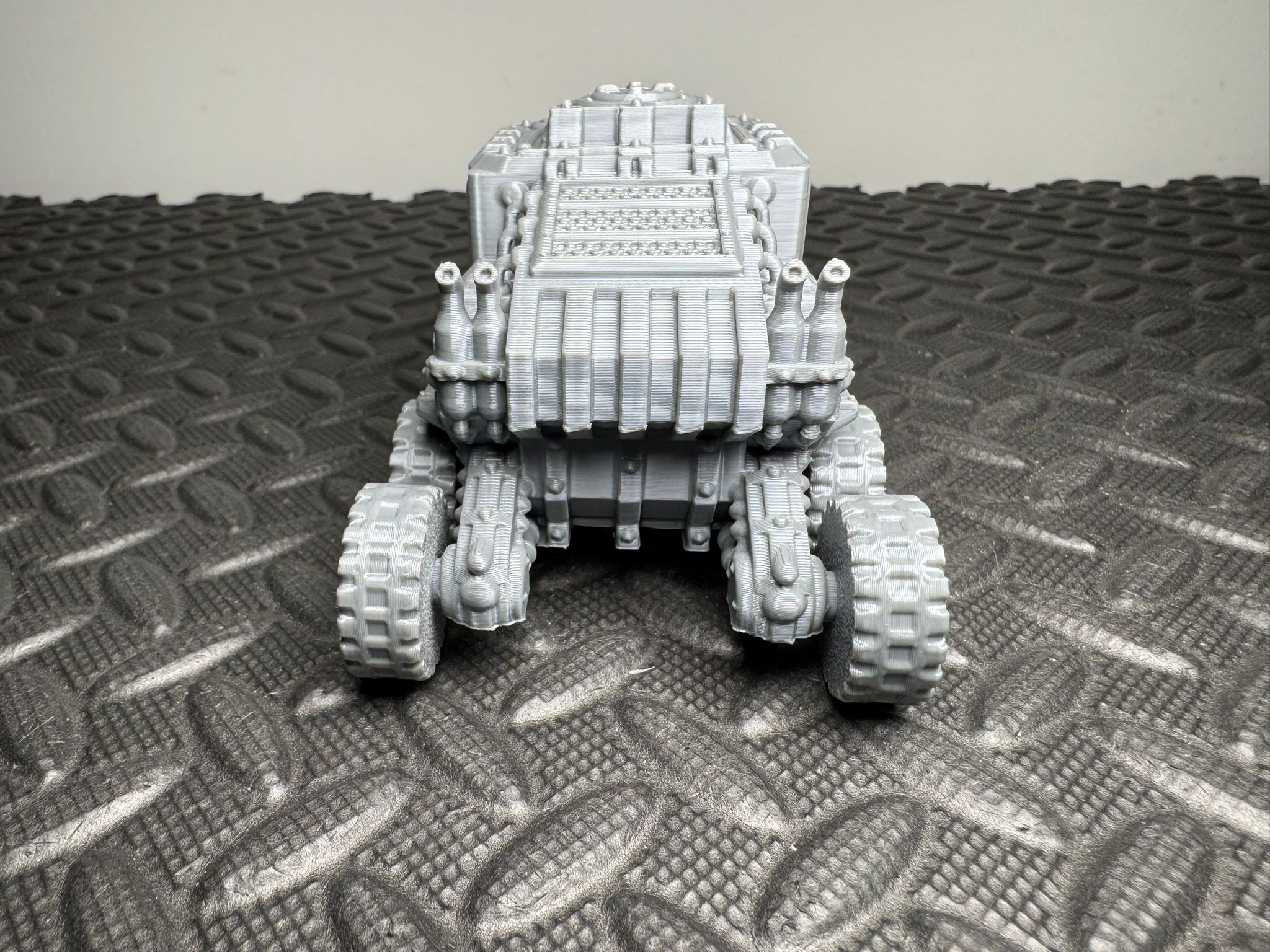 The Dirt Runner is a rugged 3D printed vehicle ideal for military, wasteland, and post-apocalyptic tabletop adventures. Featuring a solid single-body design with eight removable wheels, it’s easy to paint, transport, and display as part of your terrain or miniature setup.