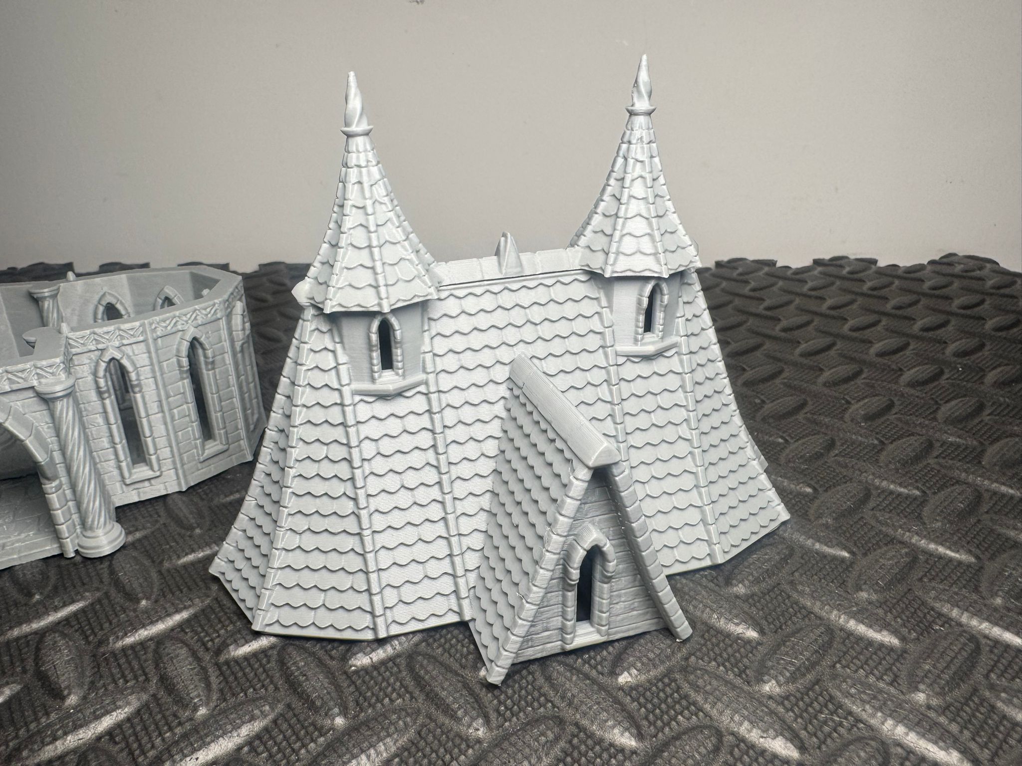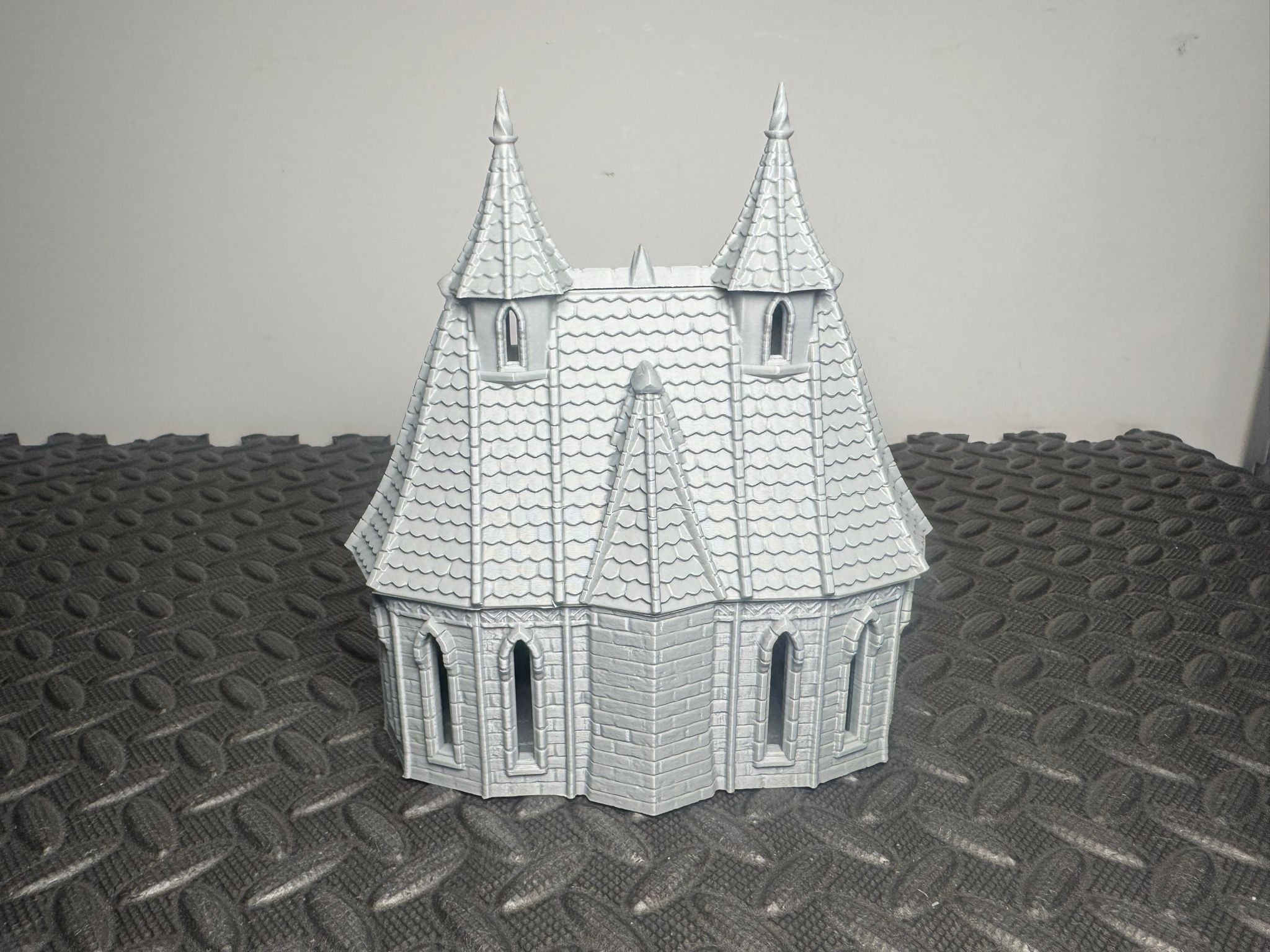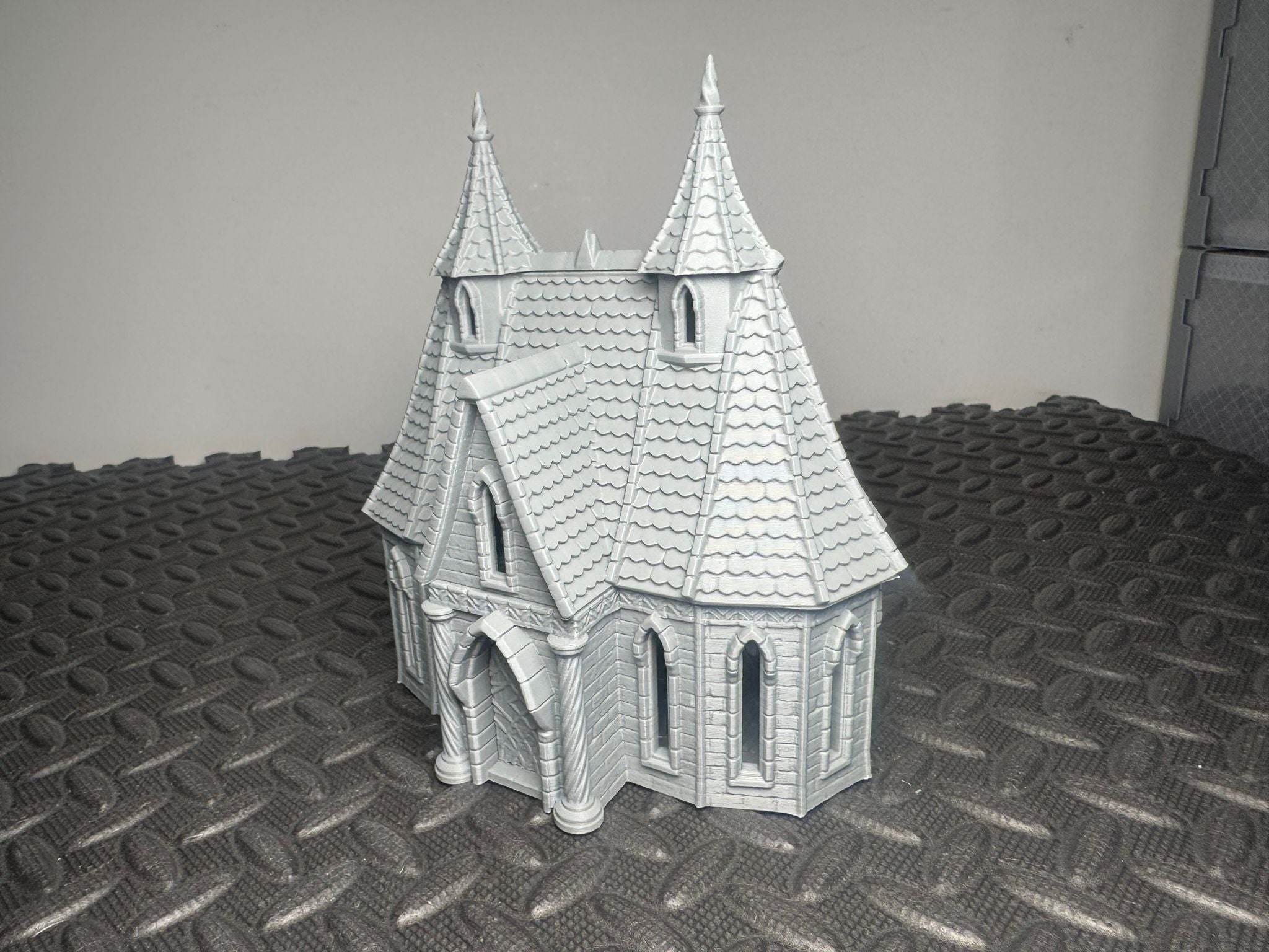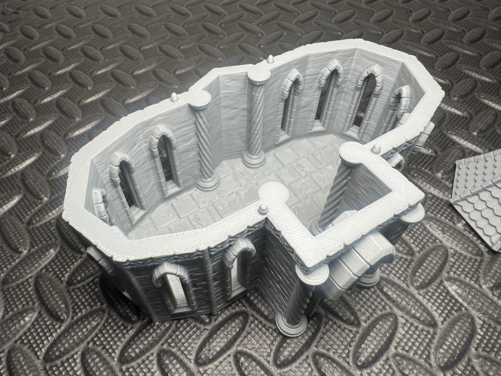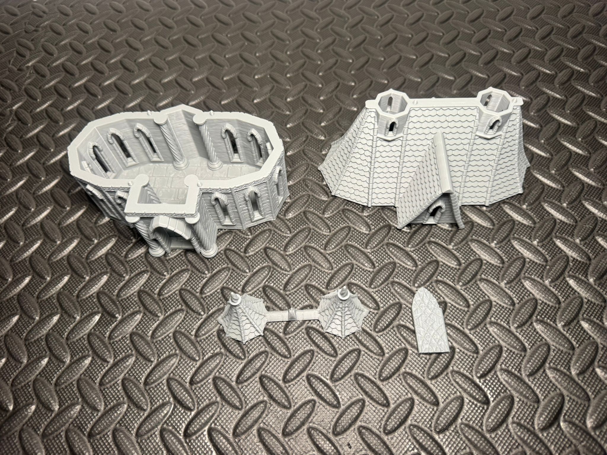 Please note: Printed in grey PLA and supplied unpainted, ready for you to prime and paint. Minor imperfections may occur from the print process. The doors have little pin holes allowing you to use wire (not included) to connect to the building if you choose too. The Miniature figure which is not included is 33mm without the base and shows the scale size. Would you like this in a different scale? Drop us a message.