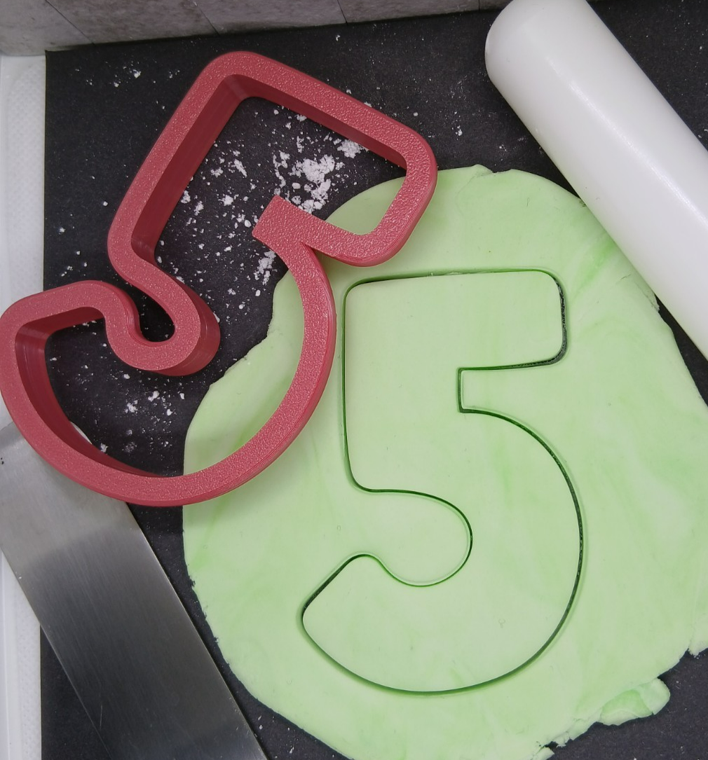 This number 5 (five) cookie cutter is 3d printed from PLA filament and can be used for cookie dough, icing, polymer clay and almost any other rollable dough you may be using for craft work. See images and videos for examples of their use with ready to roll icing.