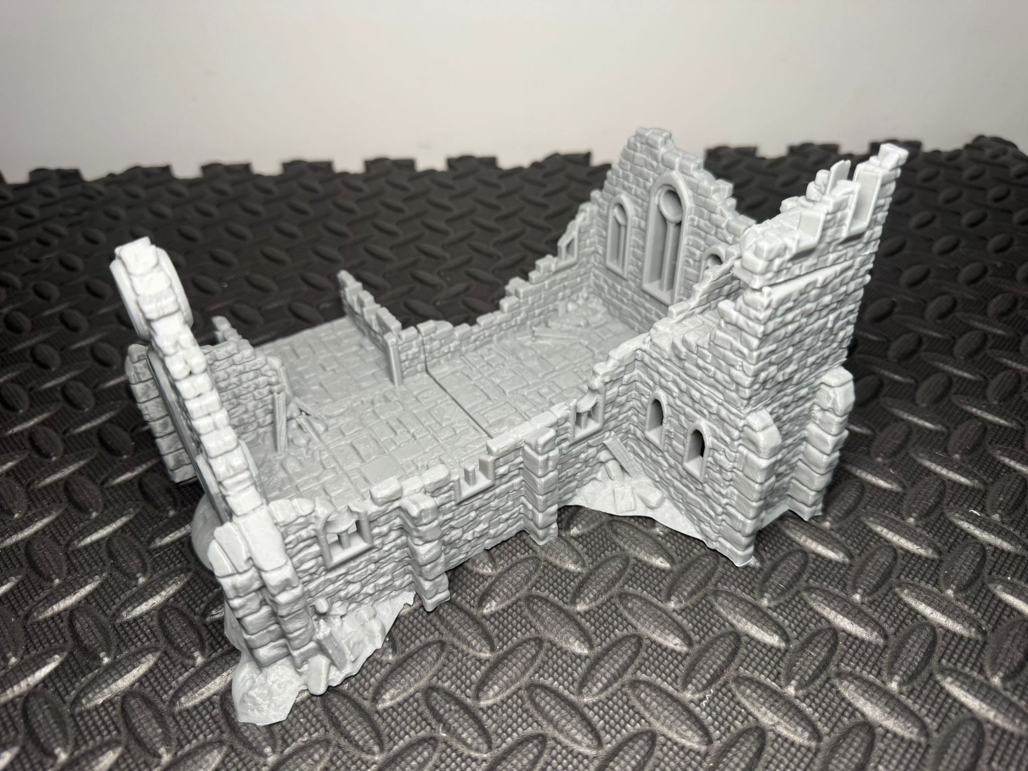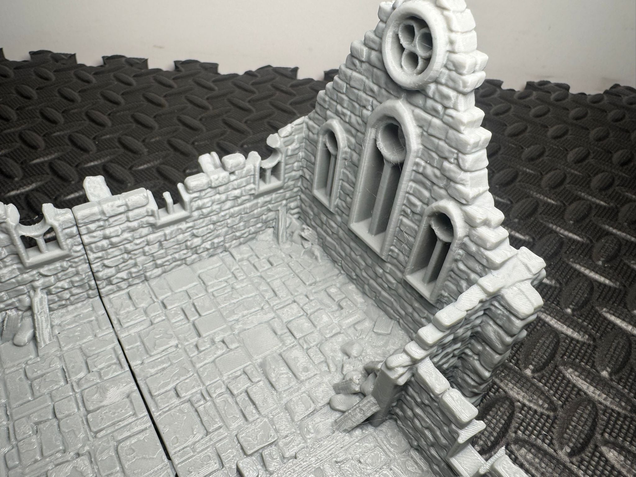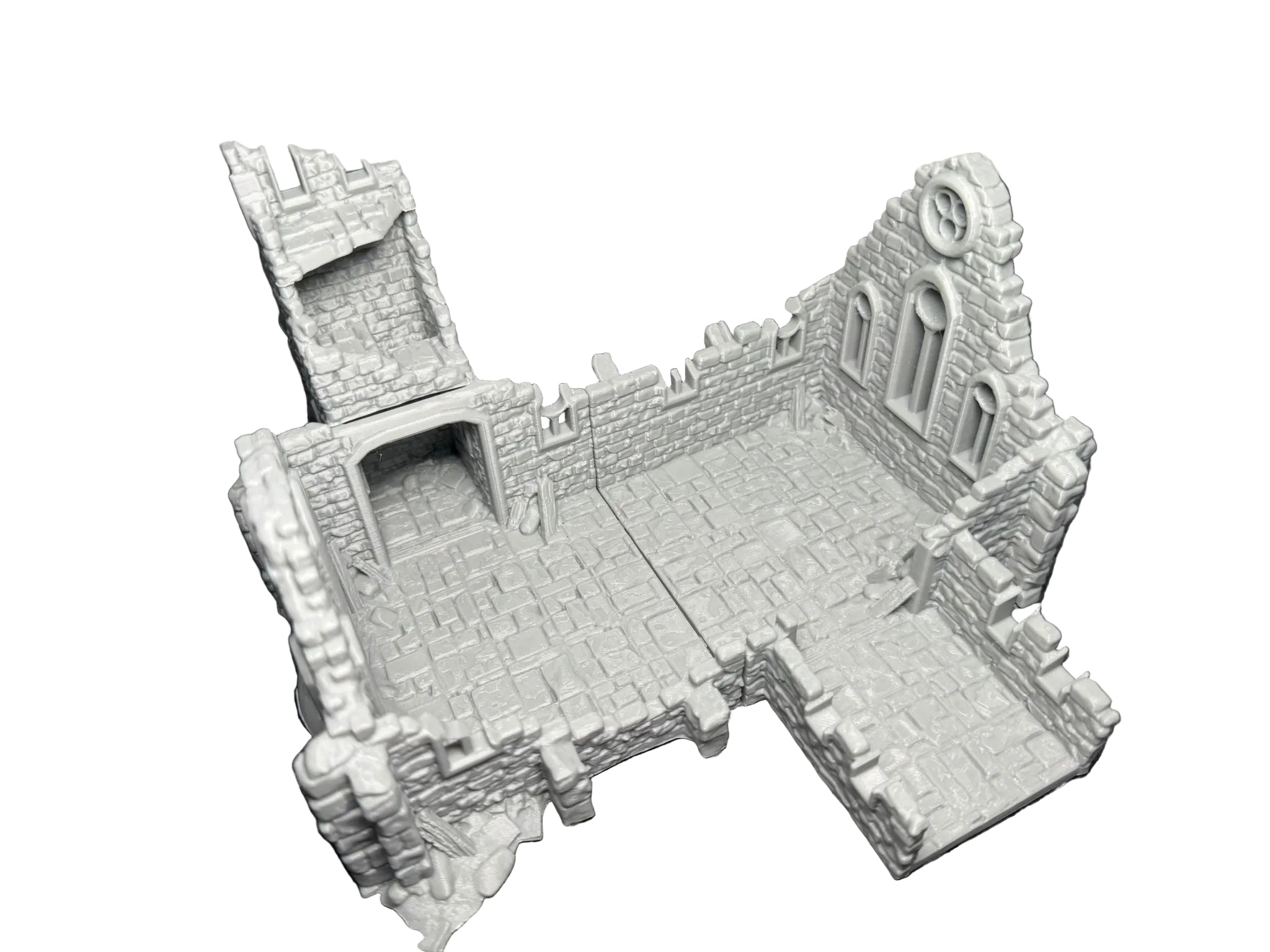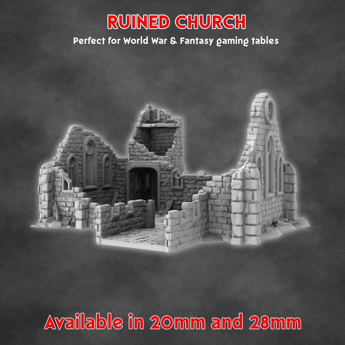 This is a 4 piece ruined church, ideal as a dramatic centrepiece for both World War and fantasy gaming tables. The broken walls, arched windows and exposed interior create plenty of line of sight blocking and tactical movement, making it as playable as it is atmospheric.