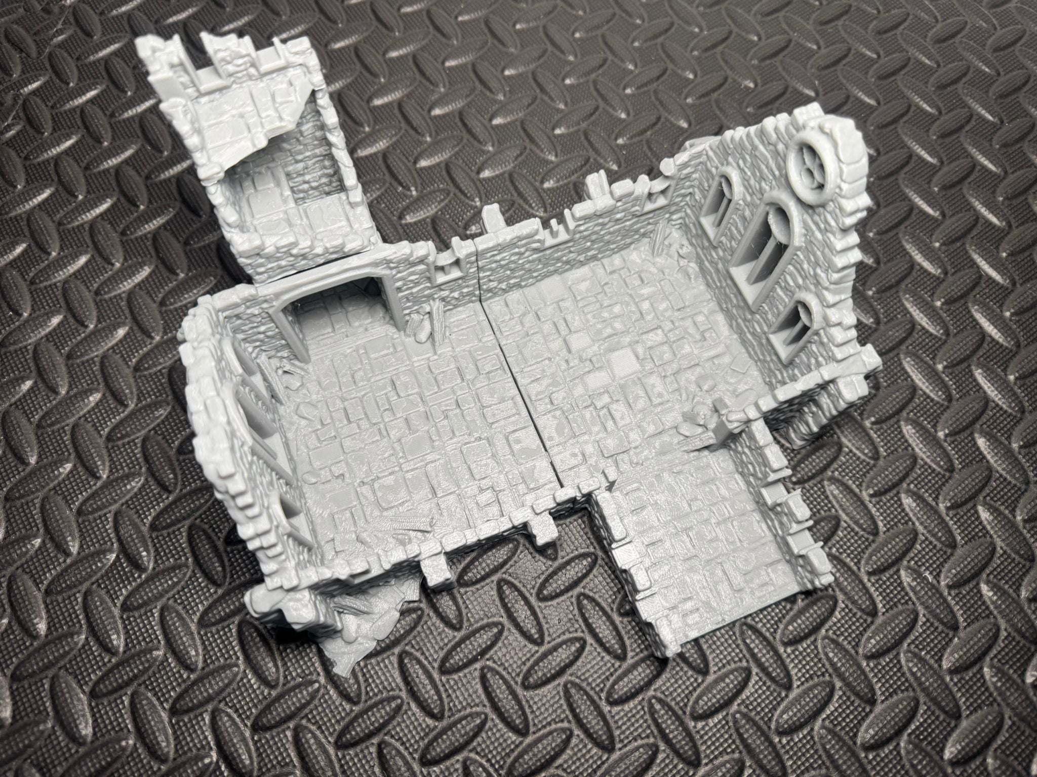 The model is supplied in four separate sections, allowing for easy painting, drybrushing and storage. No glue is required to use it straight out of the box, though you can glue the sections together if you want a more permanent setup.