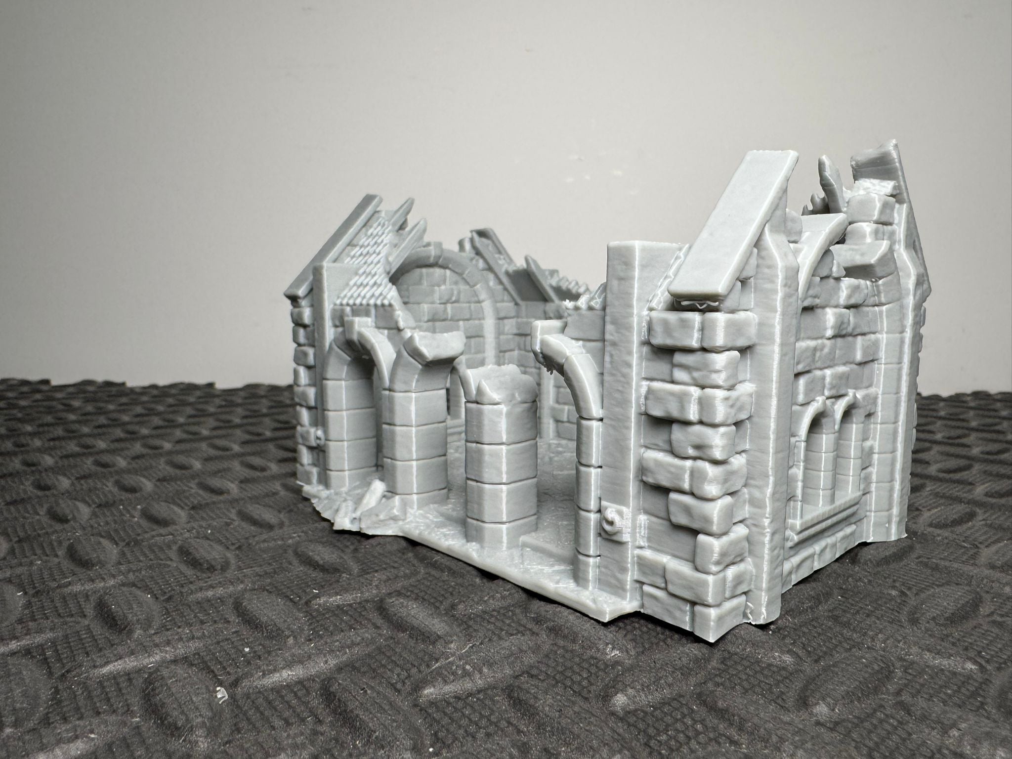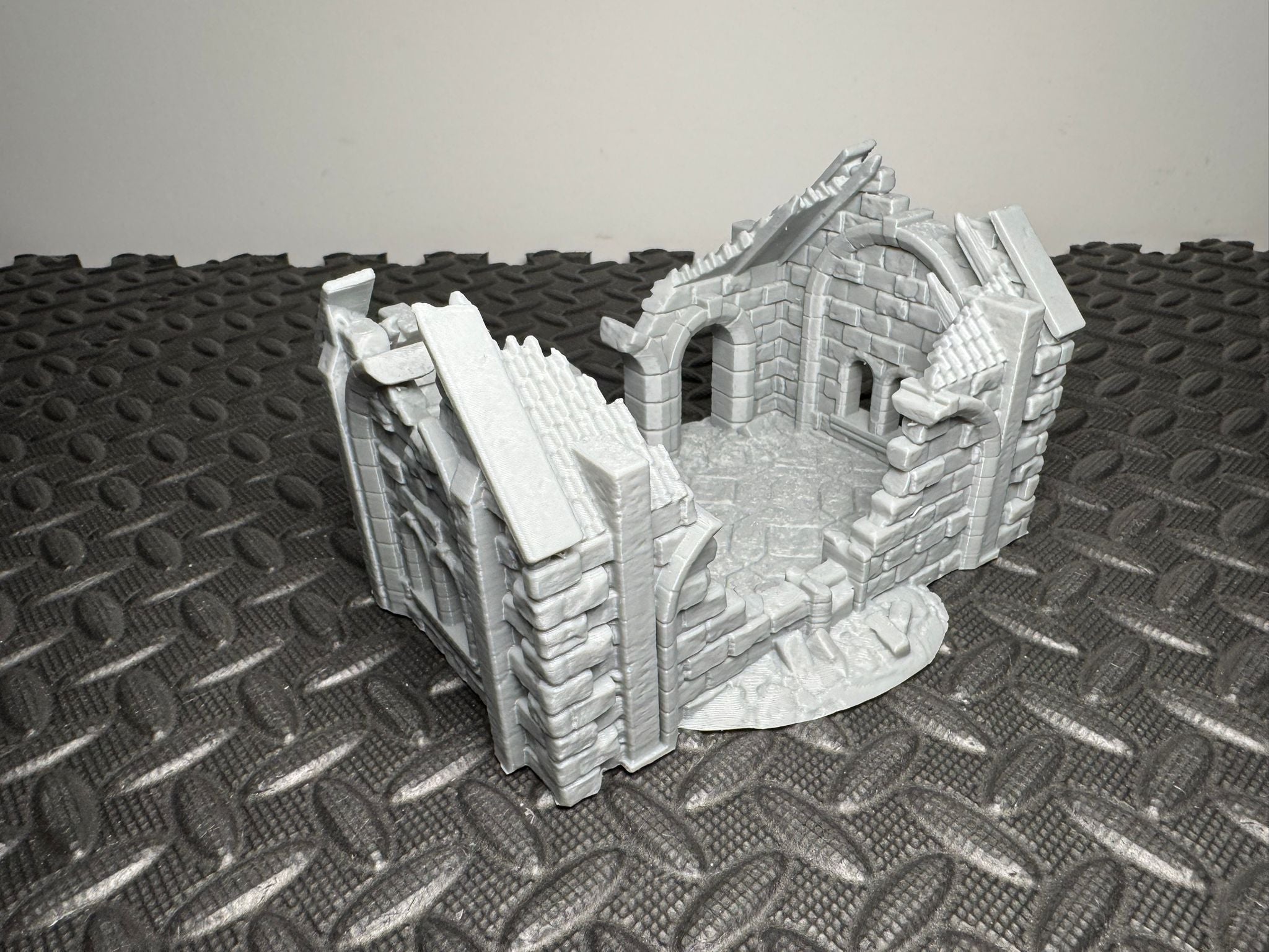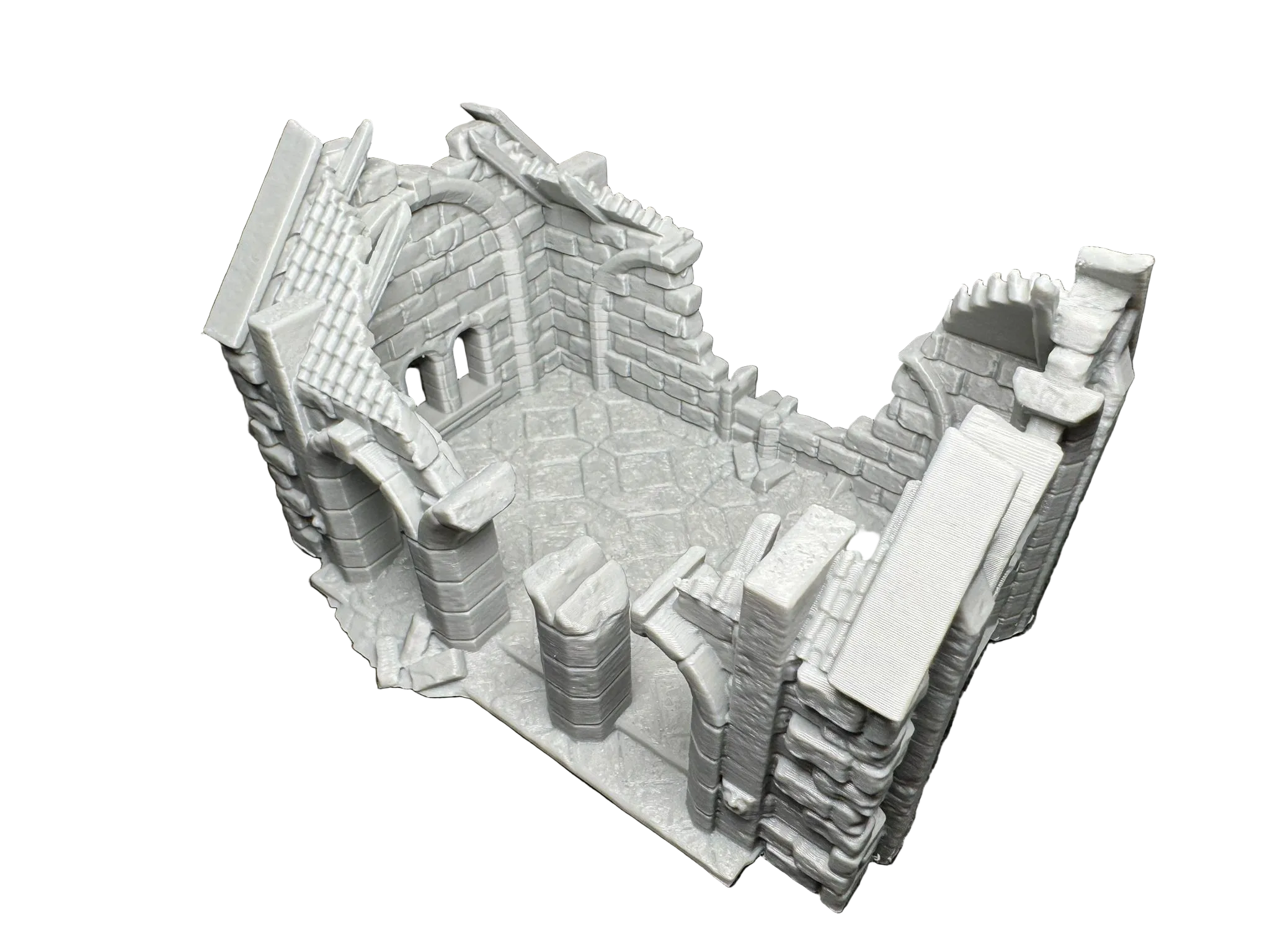 The open design and wide interior space make it ideal for gameplay, allowing miniatures to move freely inside while still offering plenty of cover and line of sight blocking. The broken walls and fallen masonry give it a natural, battle worn look straight off the printer and make it a joy to paint.