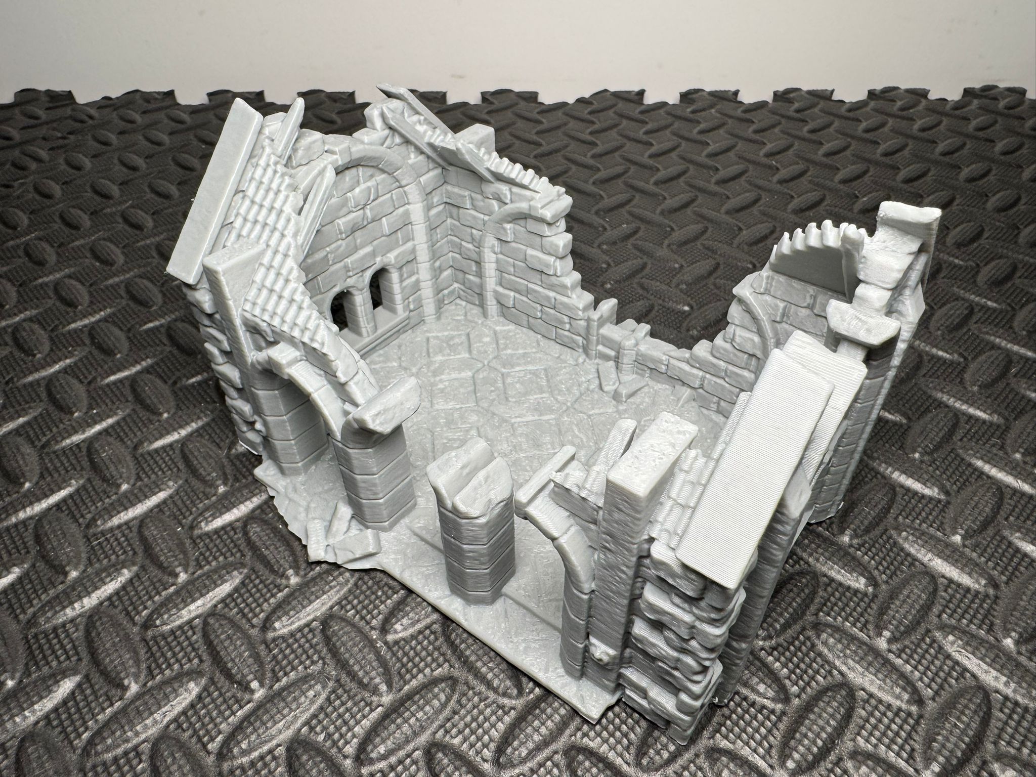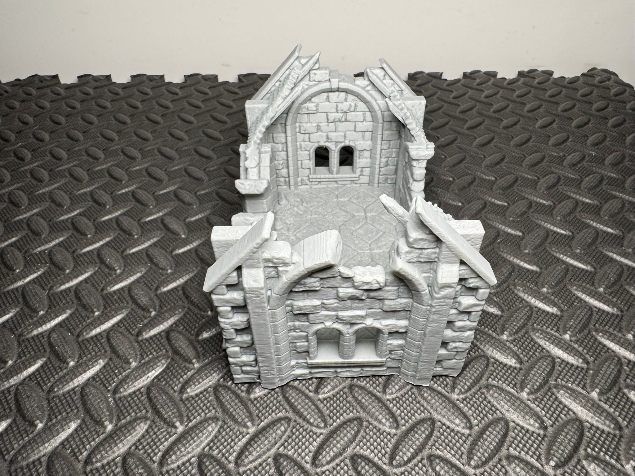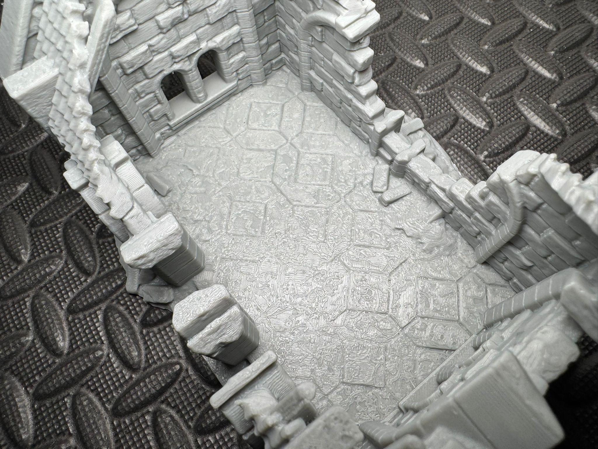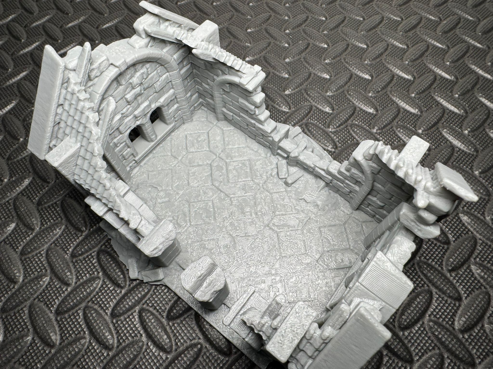 The open design and wide interior space make it ideal for gameplay, allowing miniatures to move freely inside while still offering plenty of cover and line of sight blocking. The broken walls and fallen masonry give it a natural, battle worn look straight off the printer and make it a joy to paint.
