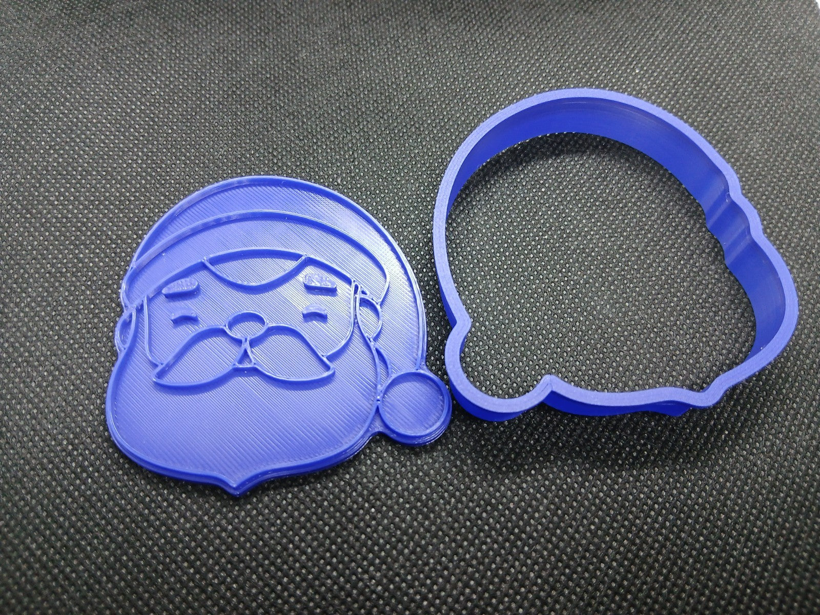 This Santa/Father Christmas cookie cutter is 3d printed from PLA filament and can be used for cookie dough, icing, polymer clay and almost any other rollable dough you may be using for craft work. Each piece consists of two parts, the outer cutter and the inner stamp which adds detail to the centre. They work perfectly together and each piece can be used separately as desired. See images and videos for examples of their use with ready to roll icing.